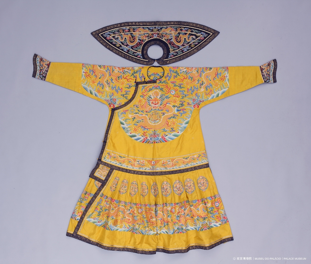 是次展覽展出故宮博物院藏清代帝后服飾近90件套,涵蓋禮服、吉服、常服、戎服及行服、便服五個部分,當中包括彰顯乾隆皇帝天子地位的明黃色彩雲龍紋朝袍、代表咸豐皇帝軍權在握的御用盔甲、突顯皇后綽約風姿的點翠嵌珠石鈿子等,同時展示繪有帝王后妃於不同場景身穿相應服飾的繪畫,讓觀眾一窺宮廷生活的輪廓和認識清服飾制度的文化內涵。展品色彩豐富,紋樣繁多,工藝精湛,反映出滿漢文化的相互交融,呈現中華民族服飾文化多元發展的璀璨華章。文化局感謝故宮博物院在疫情影響下把院藏珍品如期帶到澳門,使澳門市民每年翹首期盼的文化盛事得以順利舉行。