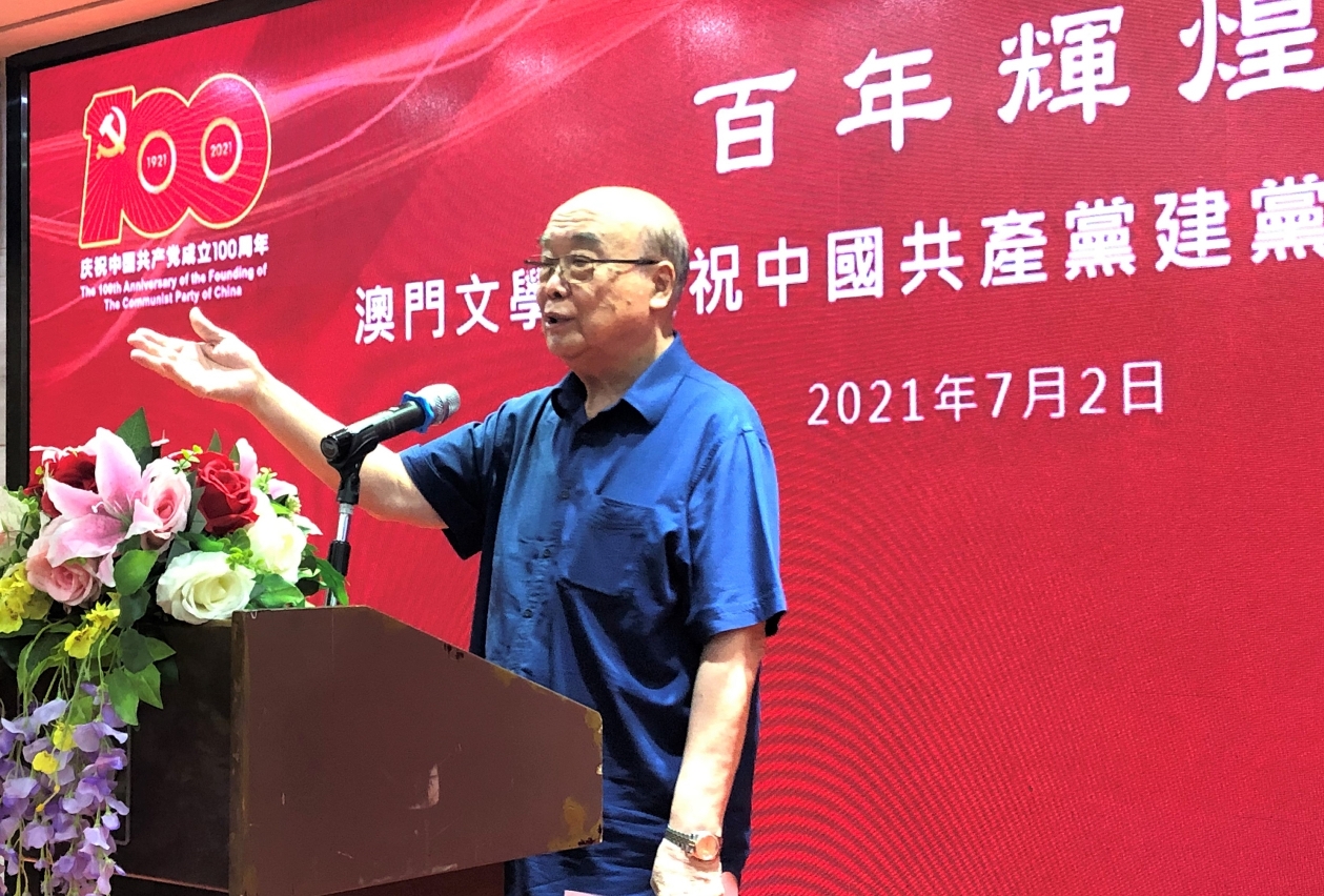 澳門文學界慶祝中國共產黨建黨一百周年晚會於2021年7月2日晚上假富豪酒店五樓舉行,中聯辦宣傳文化部部長萬速成,澳門基金會行政委員會主席吳志良以及穆欣欣、李觀鼎、湯梅笑、廖子馨、姚風、陳艷華、黃文輝、林玉鳳、鄒家禮、袁紹珊、邱子維等多位中國作家協會會員,聯同本澳文學界社團代表以及澳門日報助理總編輯鄭國偉等嘉賓出席。
