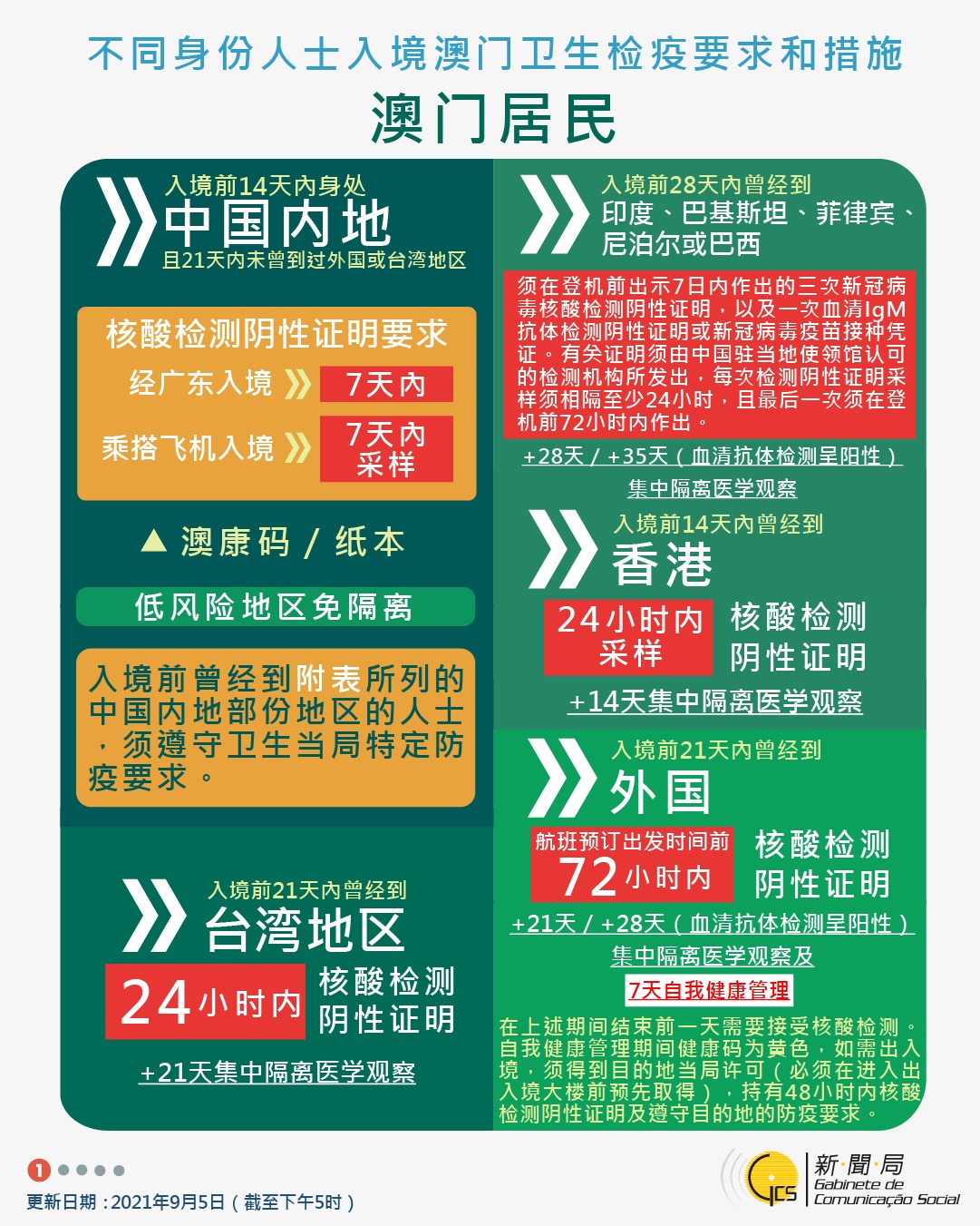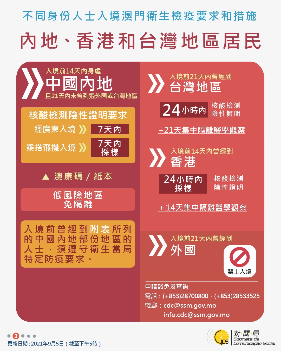 【圖文包】2021/09/05最新入境澳門衛生檢疫要求和措施