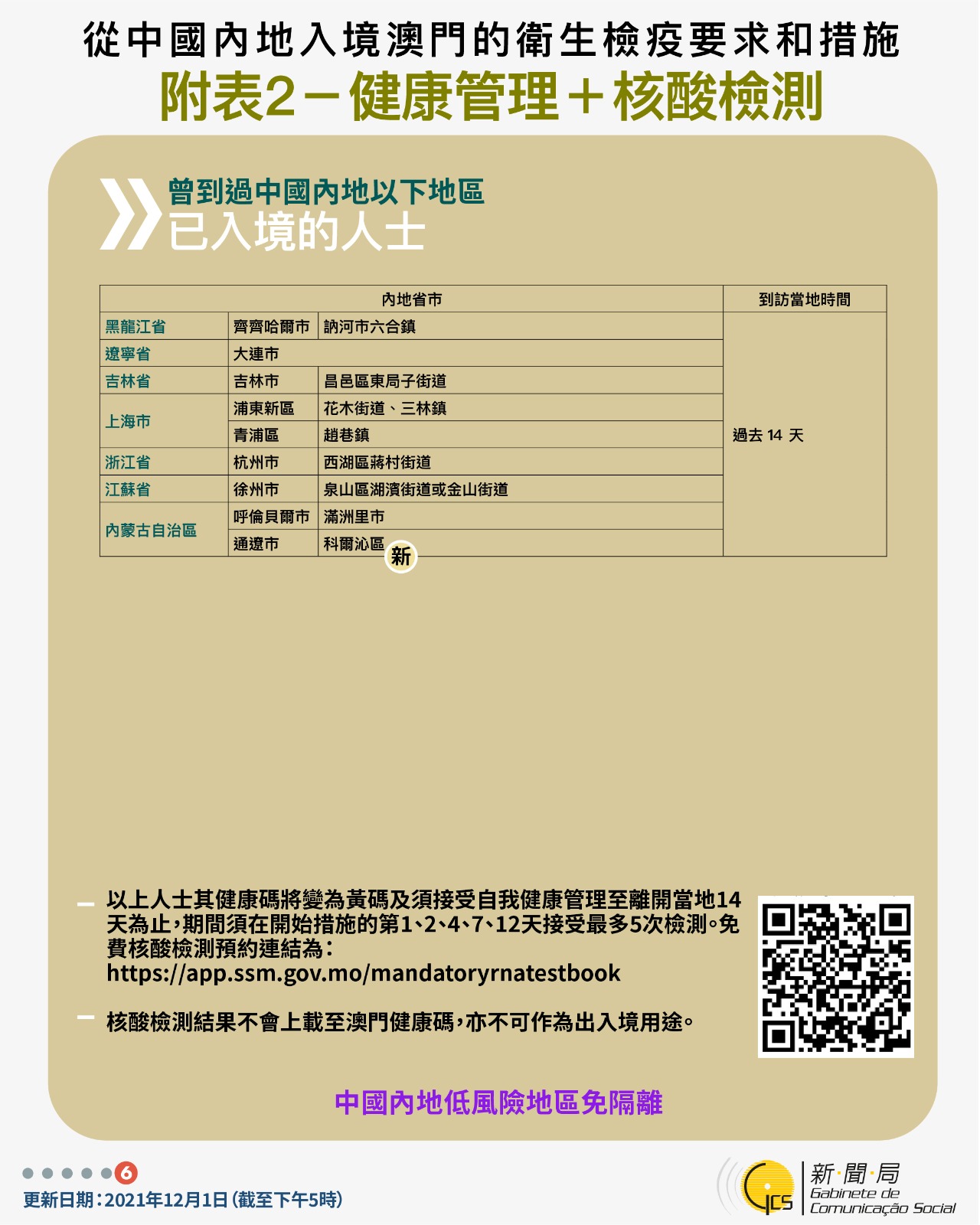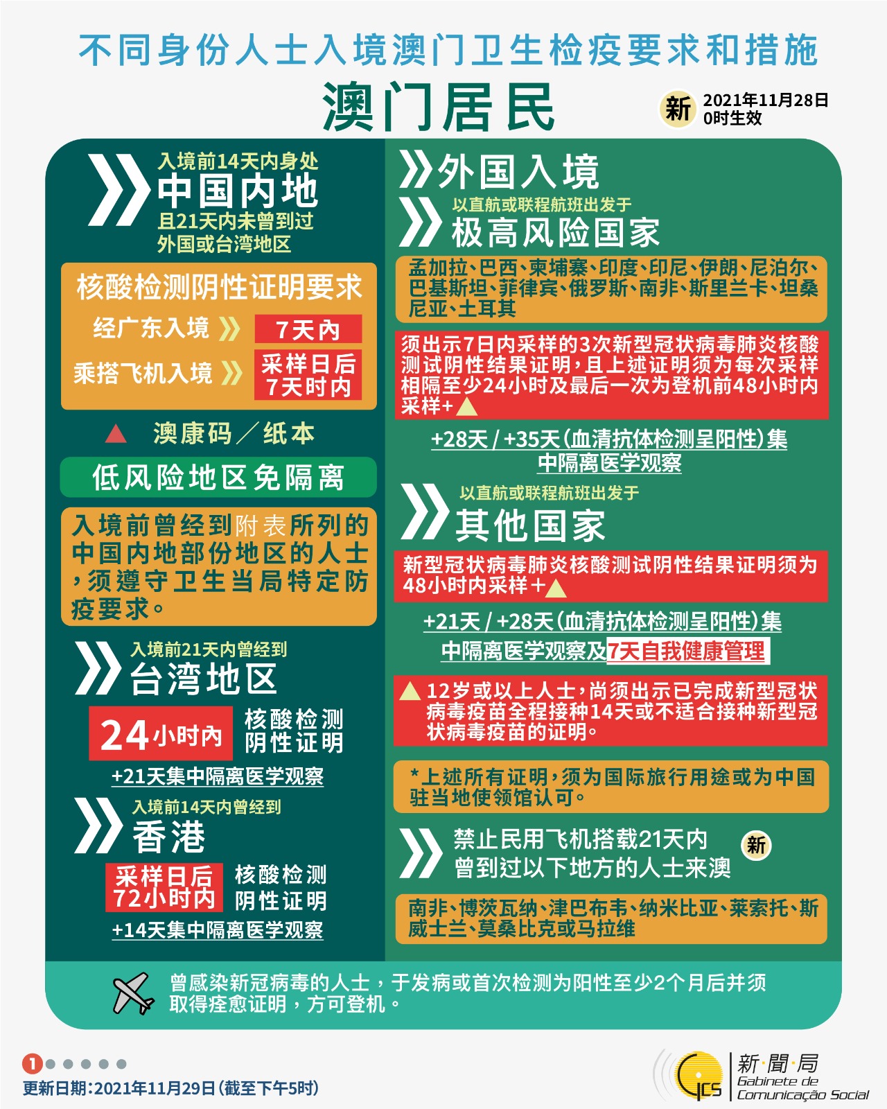 【圖文包】2021/12/1最新入境澳門衛生檢疫要求和措施