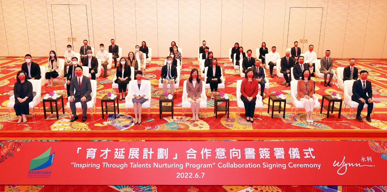 在社會文化司司長歐陽瑜、中央人民政府駐澳門特別行政區聯絡辦公室教育與青年工作部部長徐婷以及永利渡假村(澳門)股份有限公司(以下簡稱“永利”)總裁兼常務董事陳志玲的見證下,教青局局長龔志明和永利澳門有限公司人力資源高級副總裁莫慕賢於2022年6月7日簽訂親職教育方面的合作意向。
