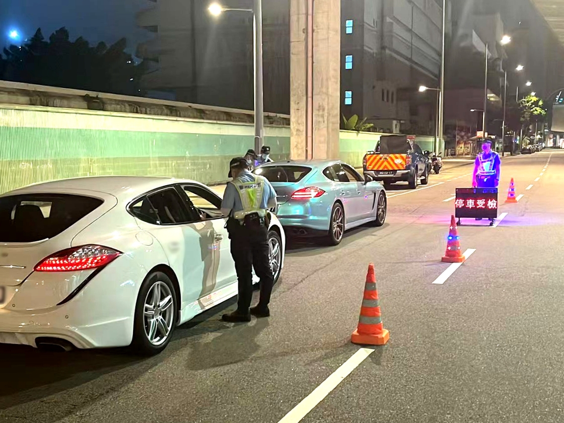 於6月13日至14日凌晨進行相關行動中,合共截查了147人(87男、60女),當中沒有發現違法違規行為;查車方面,共截查45輛車輛,合共檢控6宗違例,涉及行駛中使用流動電話及沒有登記外國駕駛執照。