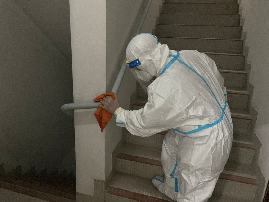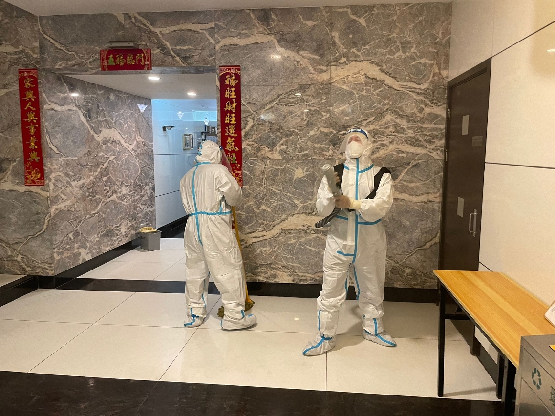 市政署對確診病例居所大廈加強清潔消毒(超級花城)