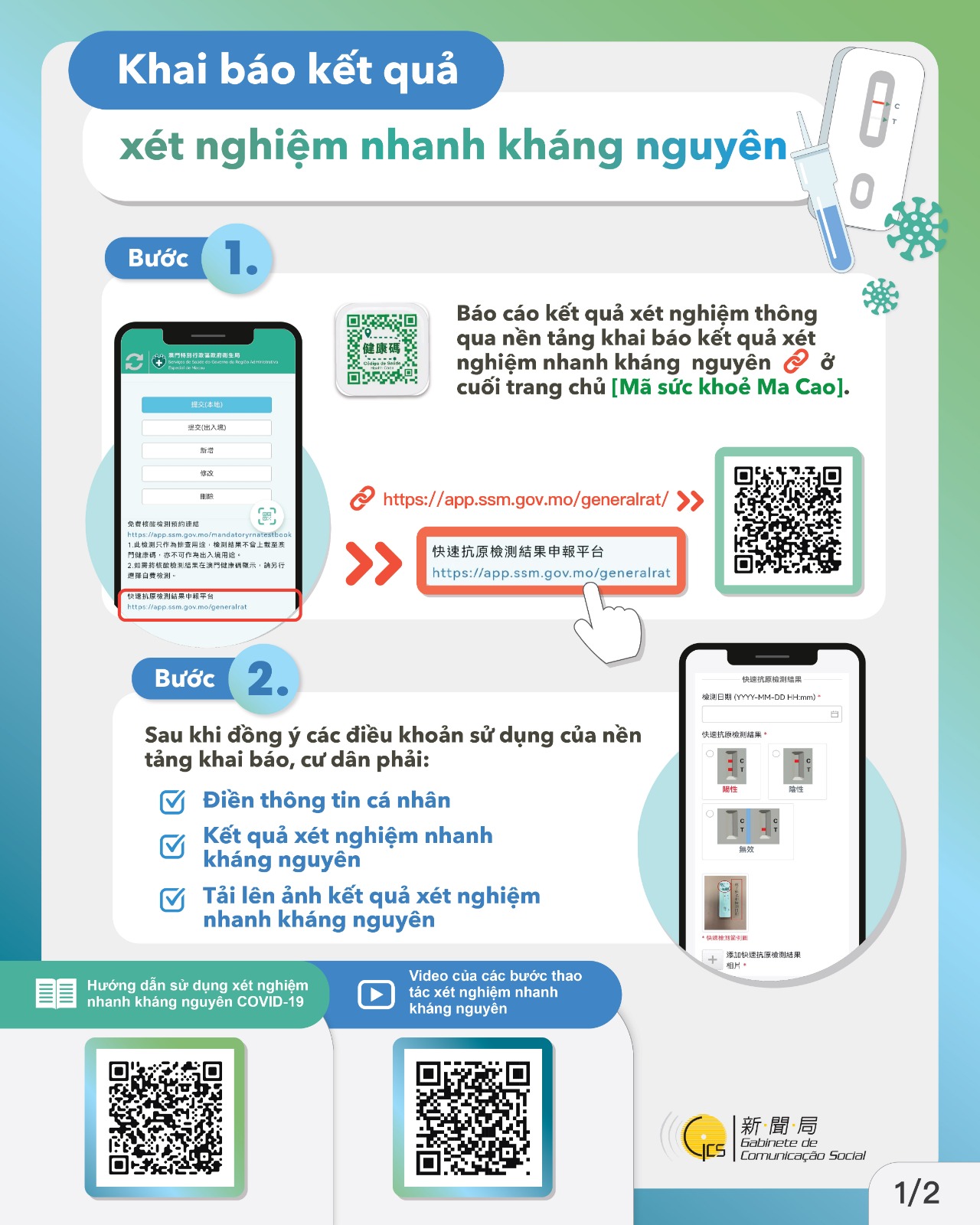 申報快速抗原檢測結果圖文包 (越南語)