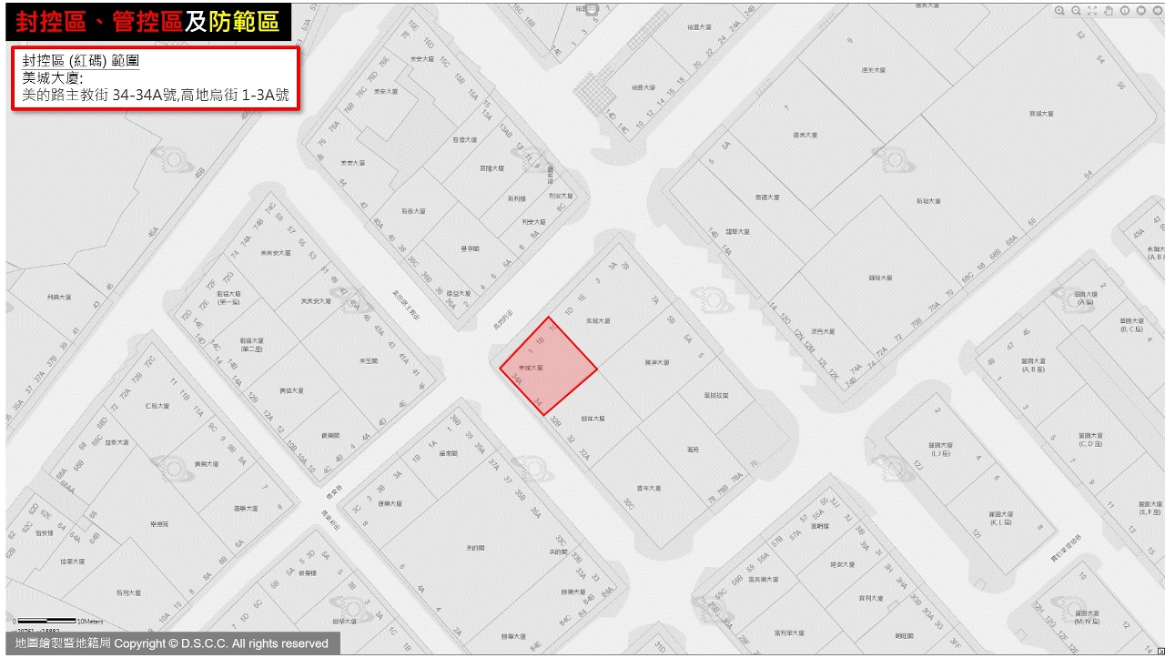 美城大廈:美的路主教街 34-34A, 高地烏街1-1E |