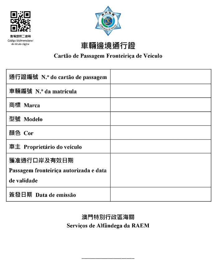 為配合澳門特區政府電子政務的發展,根據第28/2022號行政命令,「車輛邊境通行證數碼證照」將於2022年7月14日生效,而現有的紙本版「車輛邊境通行證」繼續有效,但必須於2023年7月31日前作出更換。