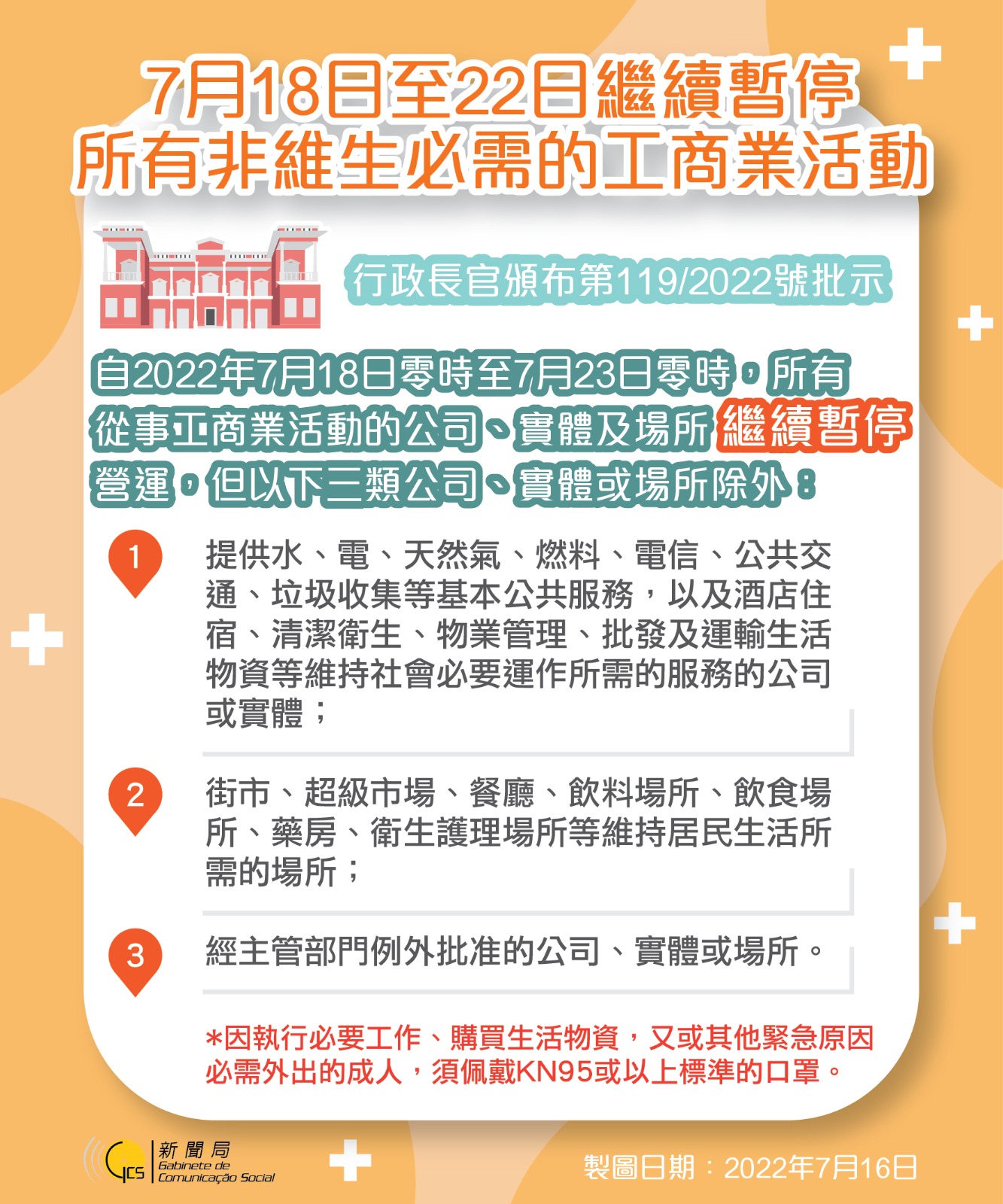 【圖文包】7月18日至22日繼續暫停所有非維生必需的工商業活動