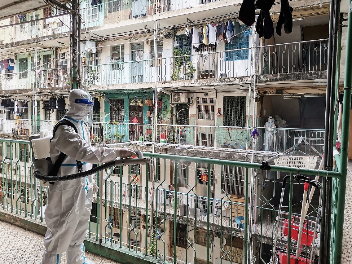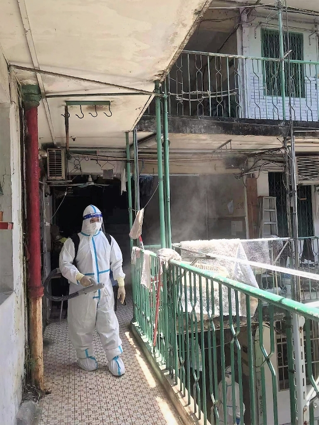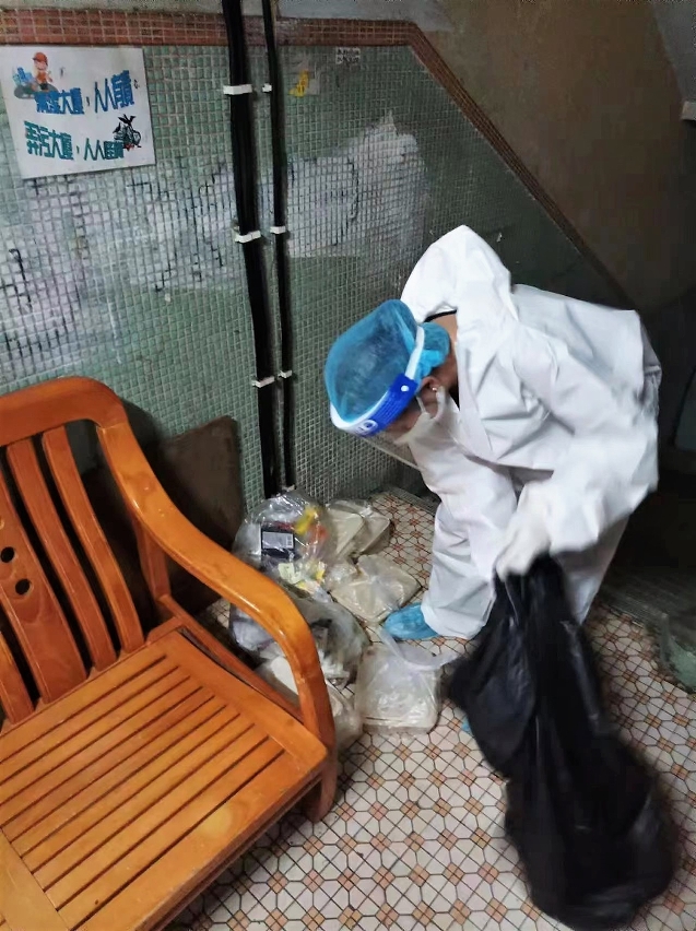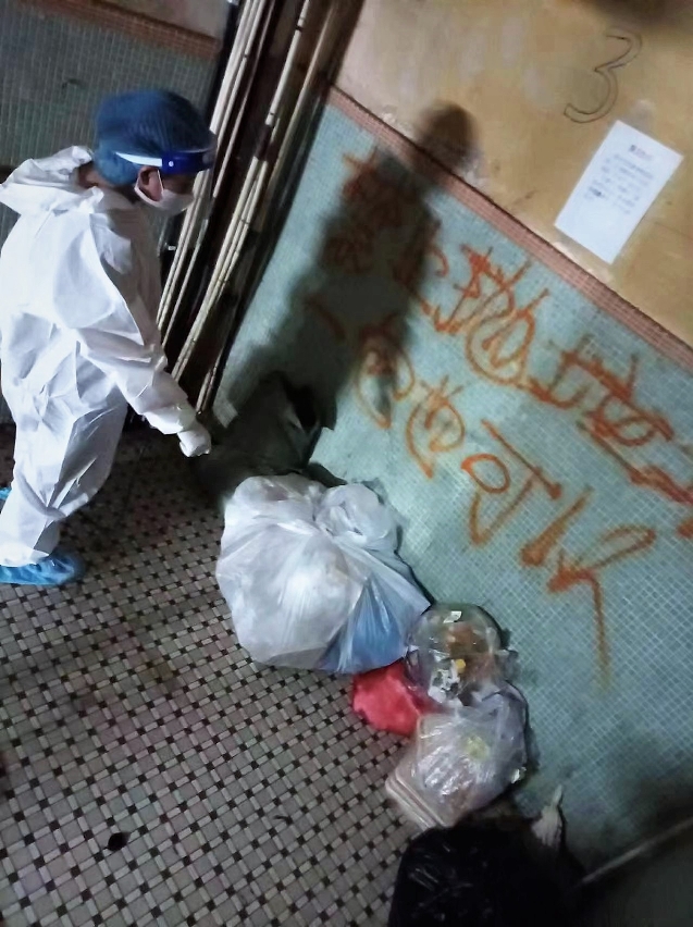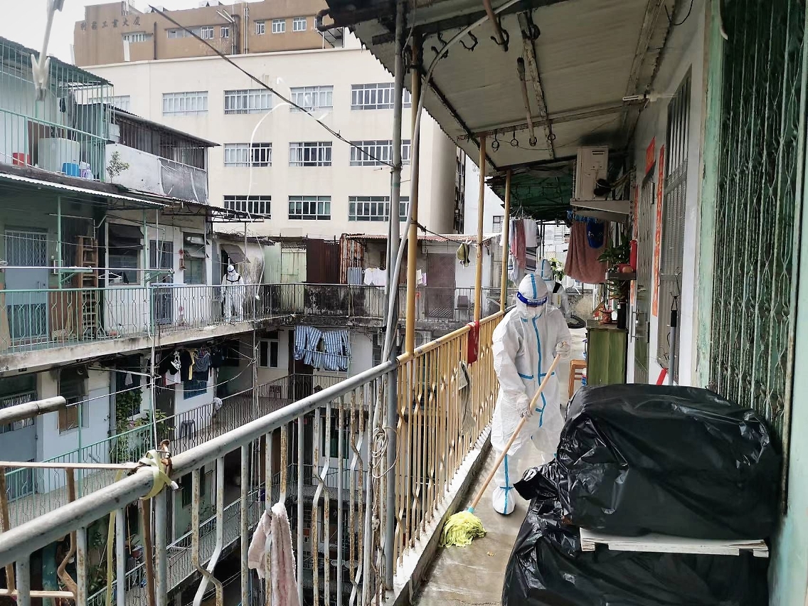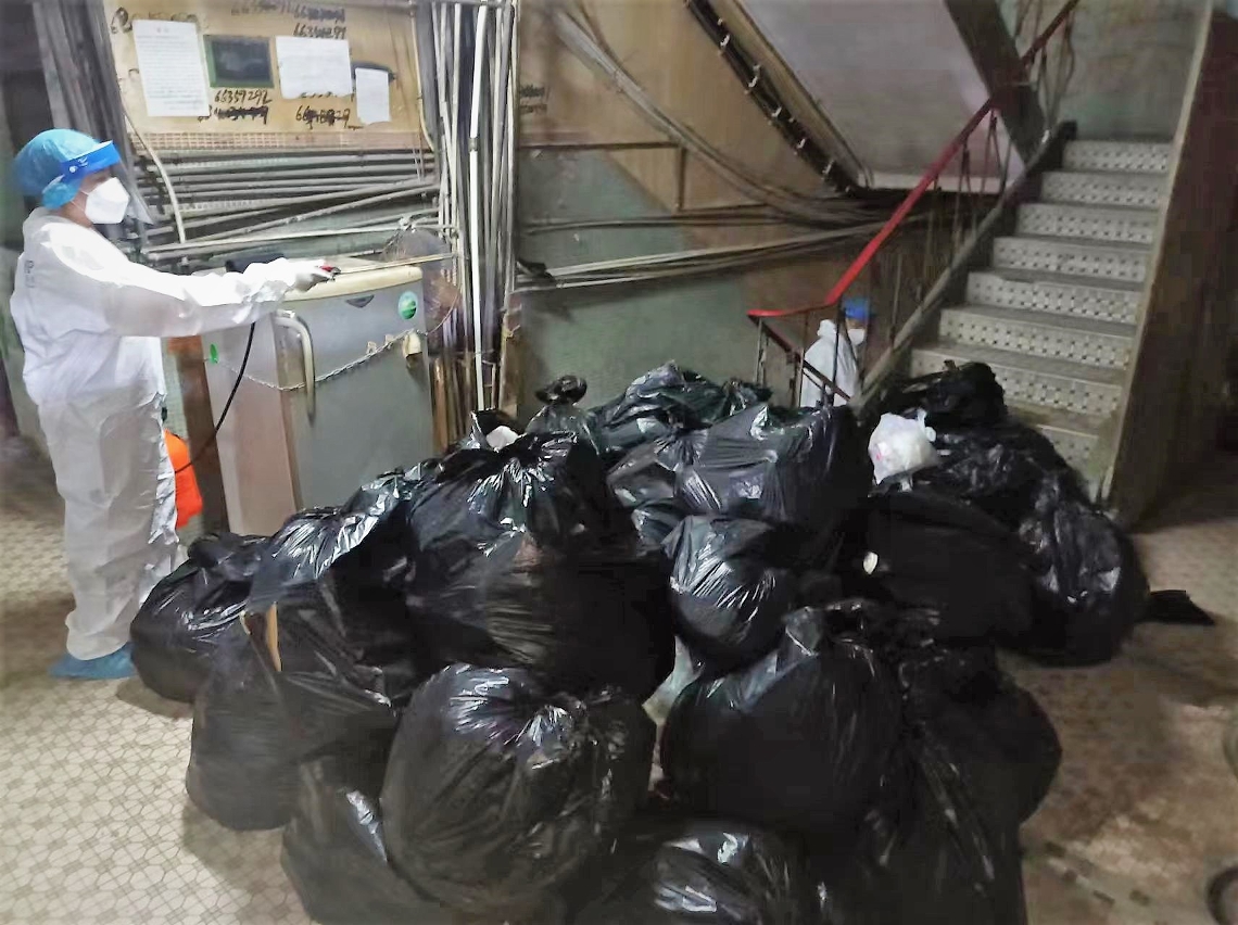 自本波疫情爆發後,市政署每晚均派員到紅碼大廈為住戶清理垃圾,其中新美安大廈更是每兩天做一次全面深層消毒,由圍封至今(18日),新美安大廈所收集的生活垃圾總量逾九噸,吉祥樓圍封三天已清理垃圾約一噸。