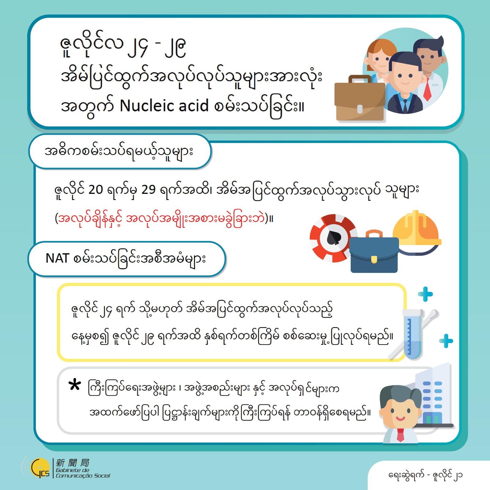 7月24日至29日離家工作人群核酸檢測(緬甸語)