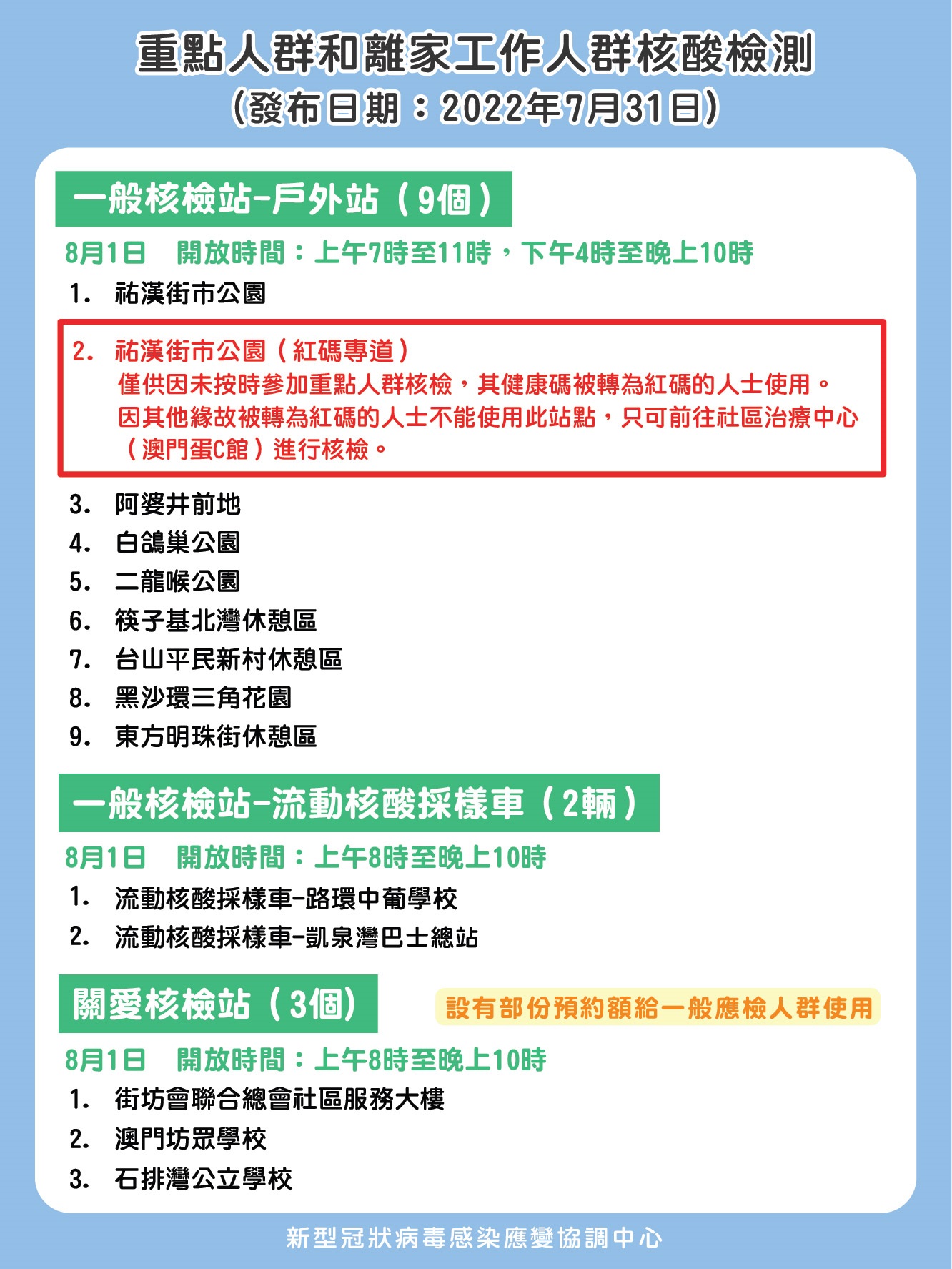 重點人群和離家工作人群核酸檢測站列表 :