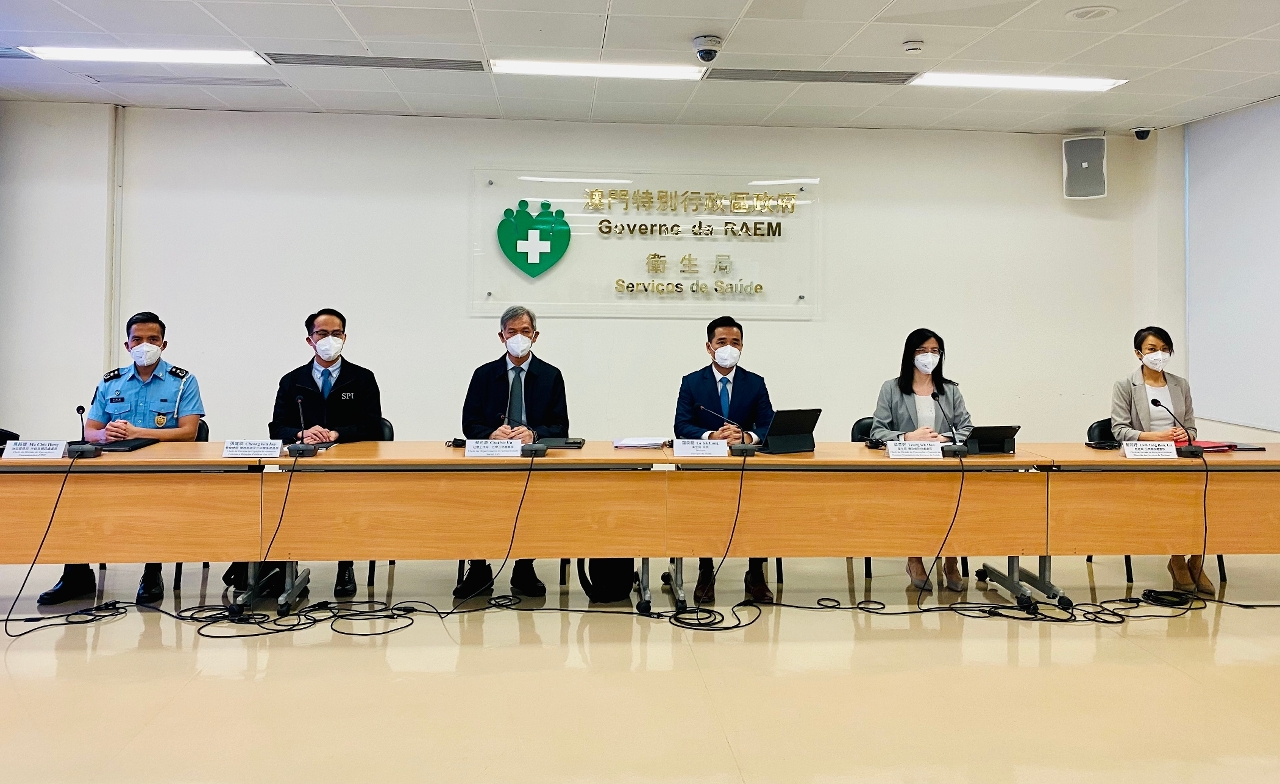 新型冠狀病毒感染應變協調中心8月1日舉行記者會,衛生局羅奕龍局長、社會工作局社會互助廳蔡兆源廳長、衛生局疾病預防及控制中心傳染病防控處梁亦好處長、警察總局警務聯絡及公共關係處張健欣處長、治安警察局行動及通訊處馬超雄處長、旅遊局公共關係處藍同好處長分別介紹了本澳的整體防疫情況。