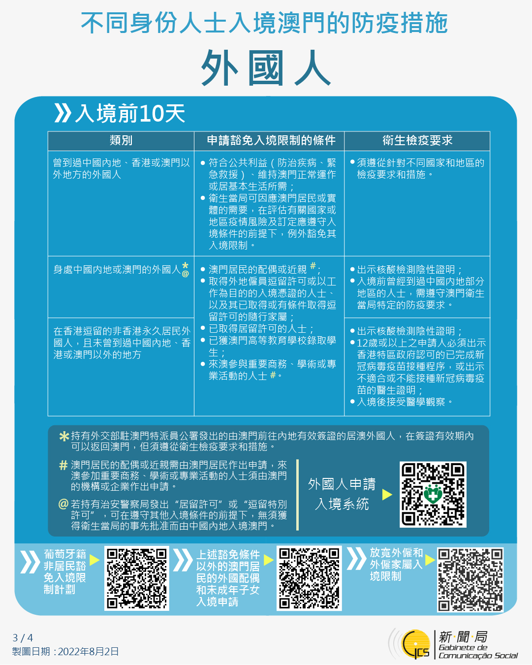 【圖文包】最新入境澳門的防疫措施 (2022/8/2)
