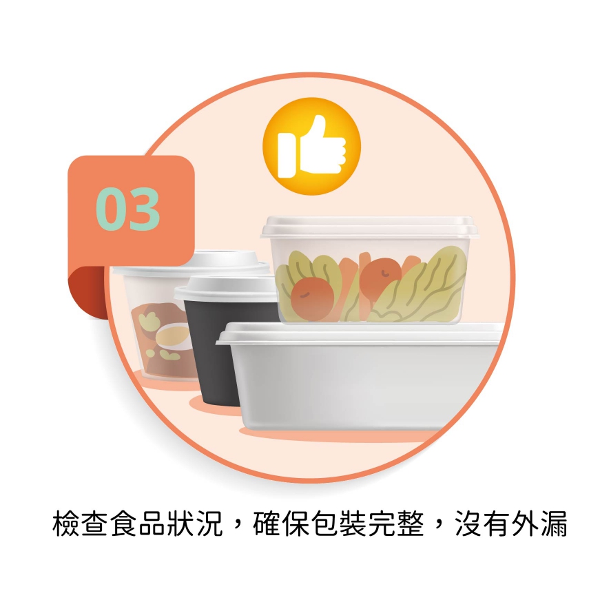 隨著外賣訂餐日漸普及,在配送外賣食品時,配送員除須遵守衛生防疫指引外,更須注意各項食品安全須知。將熱食存於保溫箱,生冷即食食品存於冷藏設備中,盡量避免長時間置放在炎熱天氣日曬雨淋,安全地把食品送到目的地。此外,亦須定期清潔消毒配送設備(如車輛及保溫箱等);配送員若身體不適,應暫停接觸食品及盡快求醫。
