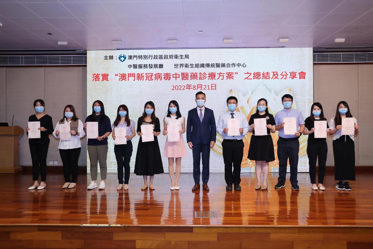 衛生局中醫服務發展廳和世界衛生組織傳統醫藥合作中心(澳門)日前舉行“落實《澳門新冠病毒中醫藥診療方案》之總結及分享會”,衛生局羅奕龍局長、鄭成業副局長、社區醫療衛生廳郭秋莎廳長、中醫服務發展廳代廳長兼世界衛生組織傳統醫藥合作中心(澳門)莫蕙代主任、衛生中心感染控制小組組長梁寶鸞護士監督及副組長余斌護士長,以及近百名的中醫抗疫小組成員出席了活動。
