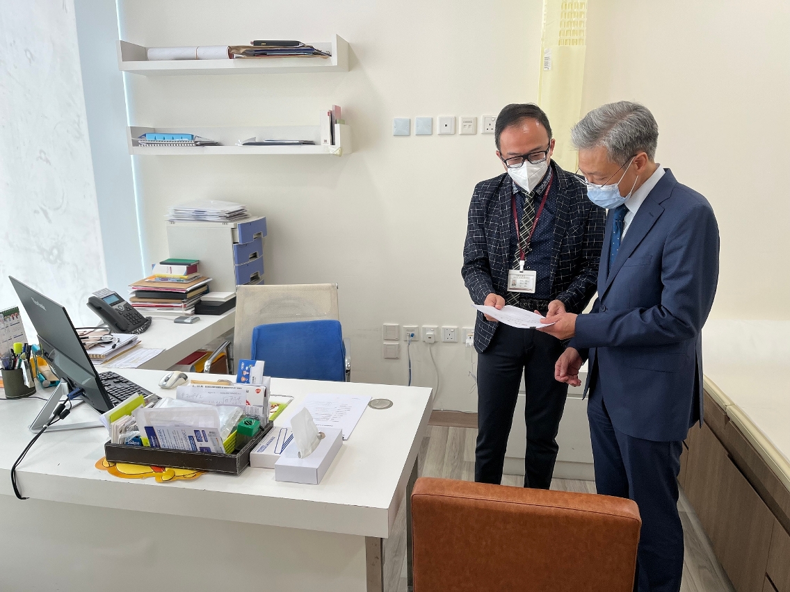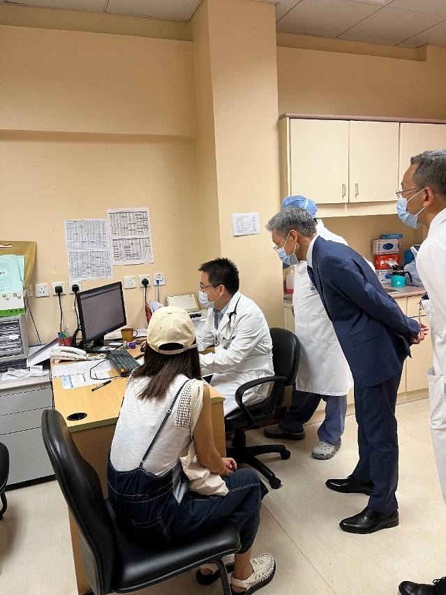 衛生局構建的“電子健康紀錄平台(eHR)”昨(30)日正式上線使用,衛生局副局長、電子健康紀錄平台諮詢協調小組代表郭昌宇醫生到參與應用eHR的醫療機構了解運作情況,並與前線醫護人員和就診病人進行了溝通交流。各醫療機構均有貼出宣傳貼紙提示居民識別可使用eHR,該紀錄平台首日運作過程暢順。