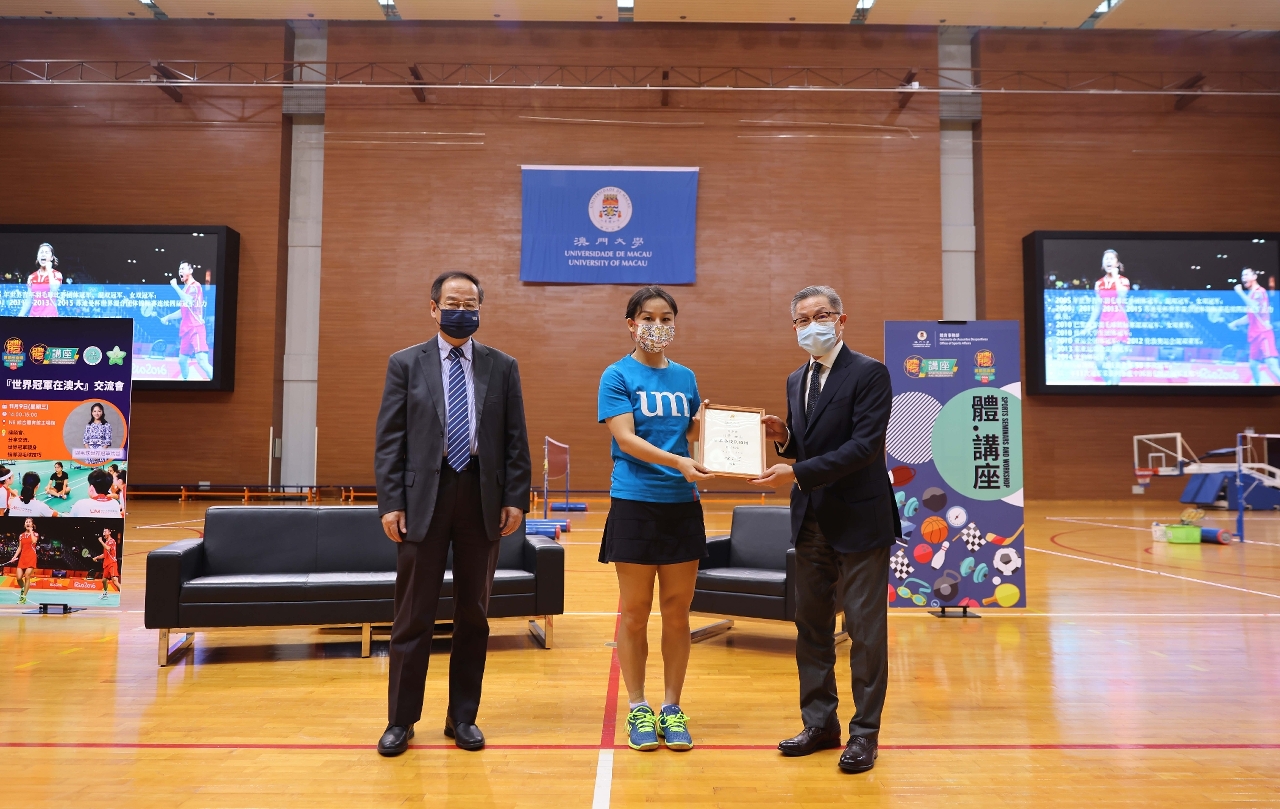 澳門大學體育事務部舉辦“世界冠軍在澳大”交流會,邀請前國家隊羽毛球運動員、澳大碩士生馬晉分享體育事業的收穫和領悟,並即席與澳大師生切磋球技,吸引超過800名澳大師生參加,交流氣氛熱烈。