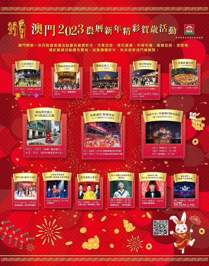 旅遊局網站已設立專頁(https://www.macaotourism.gov.mo/zh-hant/article/cny/celebrations-2023),整合各項賀歲活動資訊,方便居民和旅客查閱。