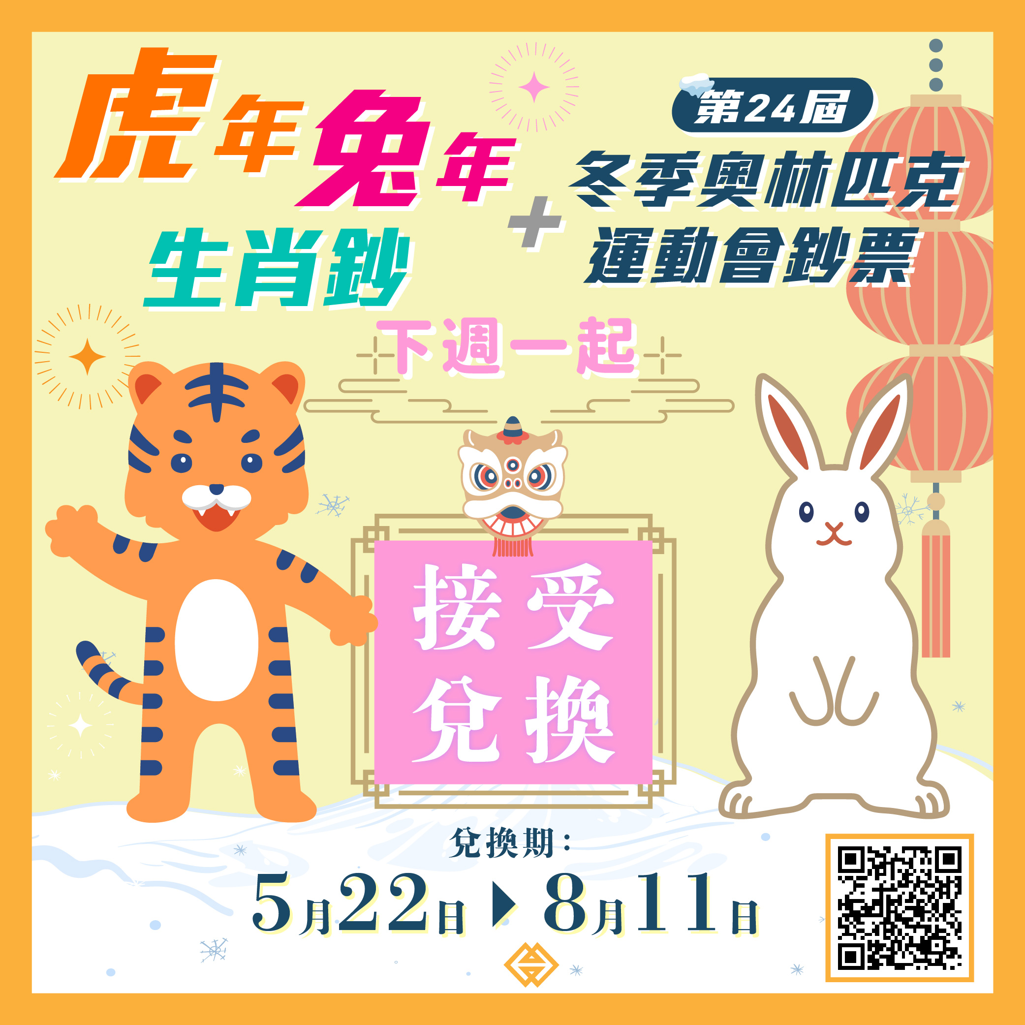 虎年、兔年生肖鈔及第24屆冬季奧林匹克運動會鈔票的網上預約登記已順利完成,各參與銀行將於下週一(22日)起提供兌換服務。