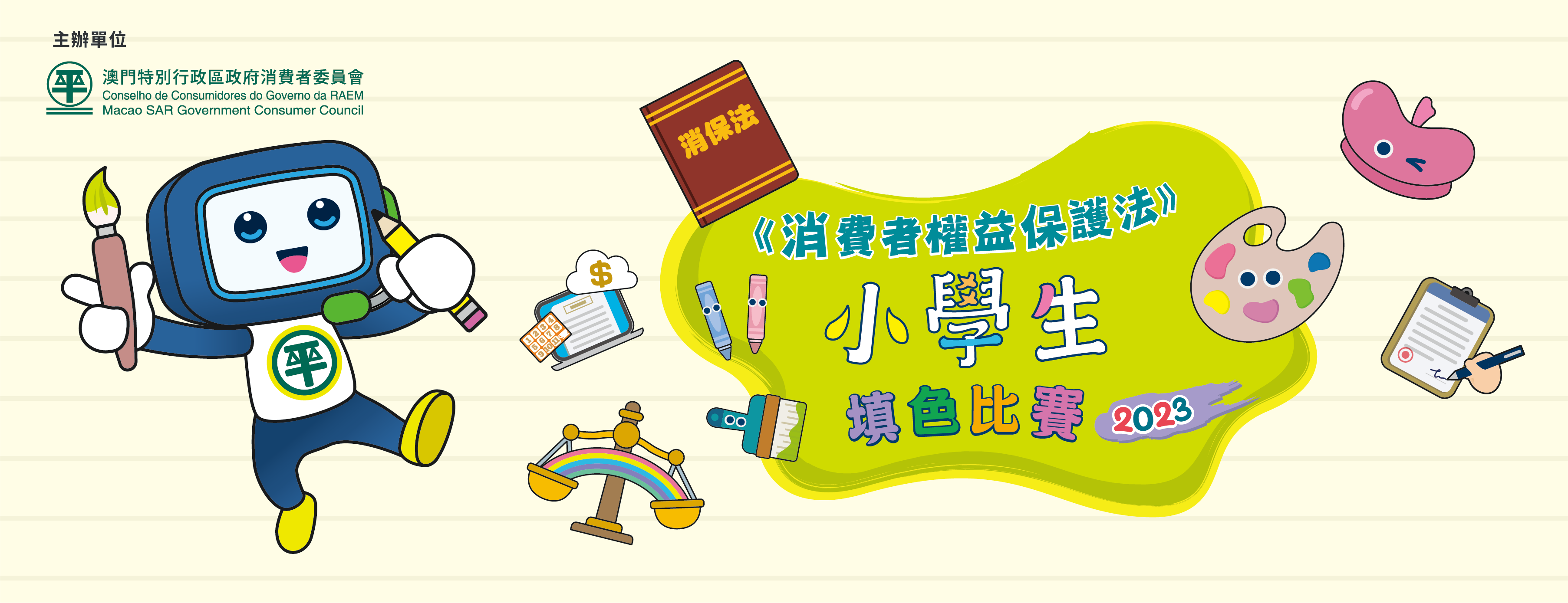 消費者委員會公佈《消費者權益保護法》(下稱《消保法》)小學生填色比賽獲獎及“我最喜愛作品獎”名單,“競猜最喜愛作品獎”抽獎結果,獲獎作品及相關名單已上載消委會網頁(www.consumer.gov.mo)。