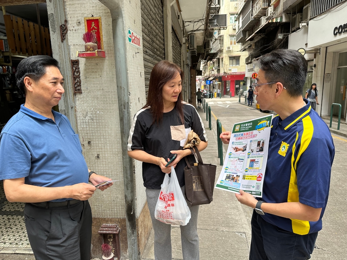 暑假期間為居民外遊、探親和修繕家居的高峰期,為適時提醒居民注意防罪,司法警察局聯同“司警局大廈防罪之友”成員到本澳各區進行暑期防罪宣傳,向居民、商戶及物業管理前線人員講解防罪資訊,警民合力防範罪案發生。