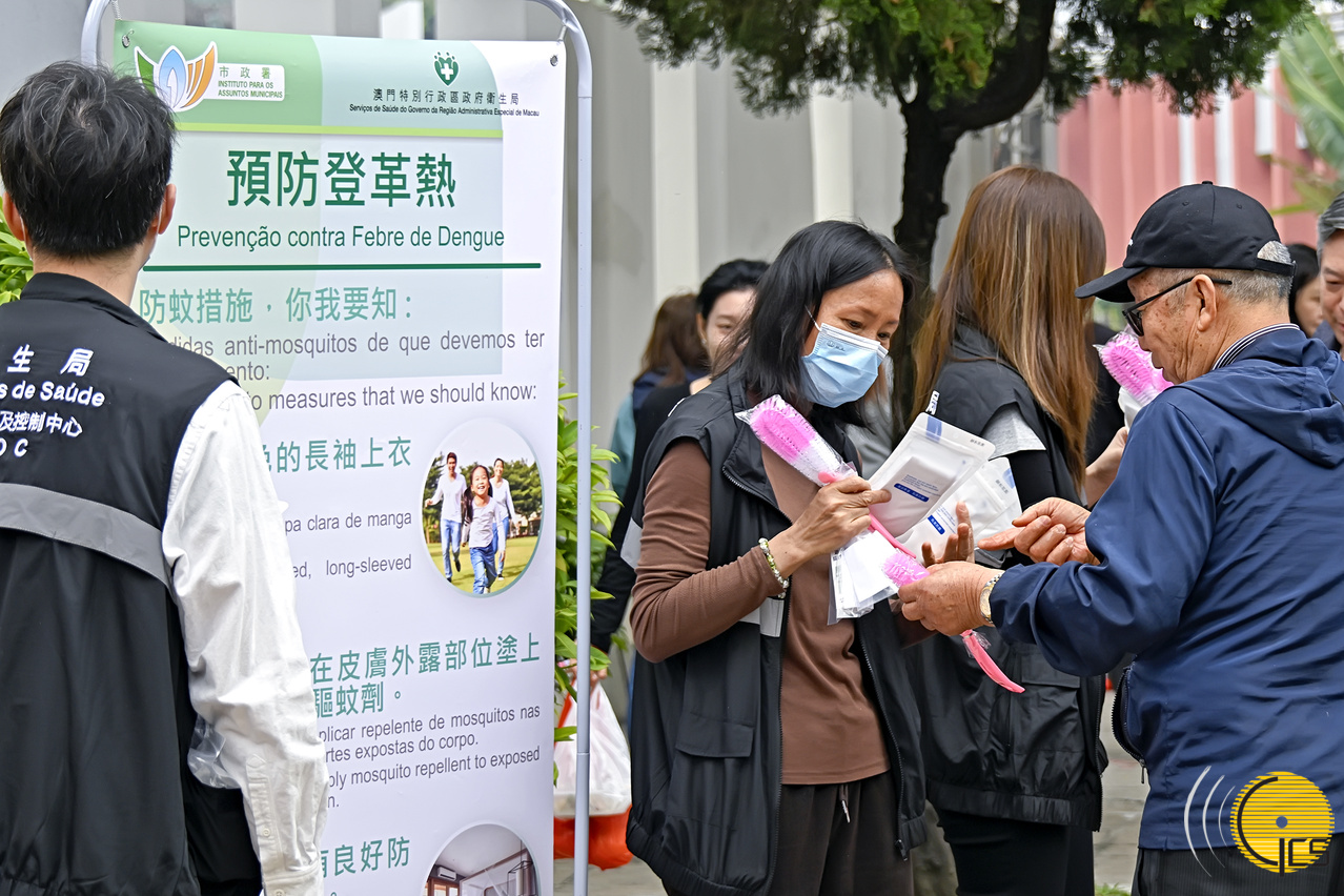預防登革熱工作小組今(4)日分別派員前往望廈聖母(新西洋)墳場及氹仔沙崗市政墳場向居民進行宣導,呼籲居民在清明節掃墓後,必須保持環境清潔,清除垃圾和積水,防止蚊患,共同預防登革熱。