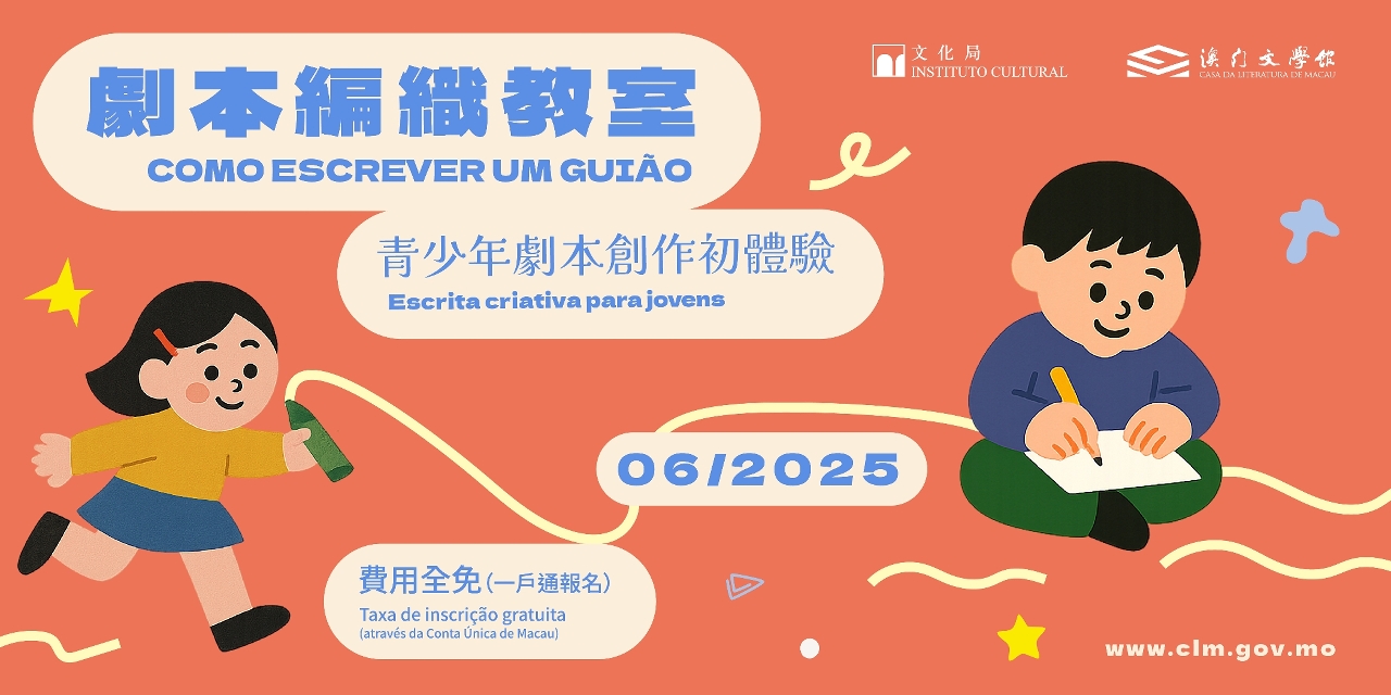 為鼓勵青少年寫作,文化局轄下澳門文學館將於6月舉辦為期4堂的“劇本編織教室──青少年劇本創作初體驗”寫作課堂,結合劇場編劇理論與實踐,帶領參加者深入探索戲劇創作的世界,激發劇本創作才華。活動費用全免,歡迎公眾於5月13日上午10時起透過“一戶通”報名參加。