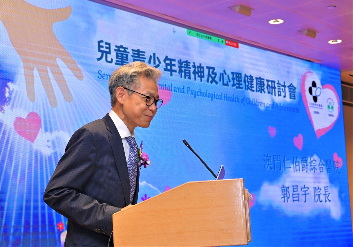 由衛生局仁伯爵綜合醫院主辦、兒科專科醫學會協辦的“兒童青少年精神及心理健康研討會”日前假黑沙環衛生中心會議廳舉行。衛生局副局長郭昌宇、鏡湖醫院常務副院長李鵬斌、社工局家庭及社區服務廳廳長李麗萍、教青局教育心理輔導及特殊教育中心主任周佩玲等180多名港澳的精神科專家、臨床心理治療家及社會工作專家出席了研討會,聚焦網絡時代背景下兒童及青少年心理健康面臨的挑戰與應對策略。