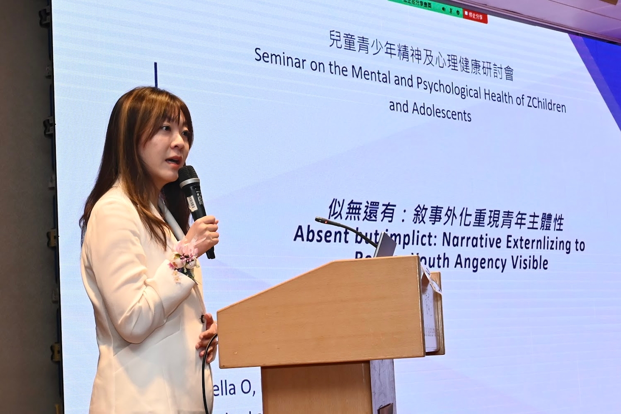 衛生局心理治療師鄭雪影、黃煒琪及彭詠思在《兒童心理健康系列:識別警號・分析成因・干預技巧》專題演講中,結合本澳案例與港澳學生情緒統計數據,詳述辨識兒童心理問題的早期信號,剖析了家庭暴力與情感忽視等高危因素,並特別強調網絡時代下的情感虛擬化現象,加劇了青少年孤獨感與情緒危機。澳門聖若瑟大學高級講師柯麗珊在《似無還有:敘事外化重現實體性》專題演講中,提出透過敘事療法協助青少年重構自我認同,賦予情感表達主體性,為心理干預提供新思路。本澳精神科學者何志榮醫生則分析了相關行為的內在心理機制;香港瑪麗醫院兒童精神科醫師梁文灝副教授及楊威達副顧問醫生,分享了香港在兒童精神疾病診療體系建設、精準用藥及個性化治療的寶貴經驗。