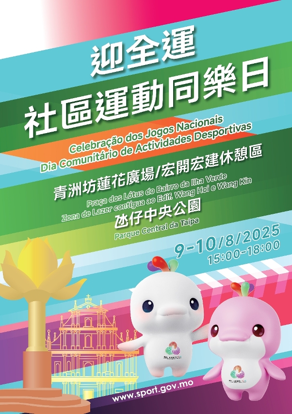 為增進市民對第十五屆全國運動會及全國第十二屆殘疾人運動會暨第九屆特殊奧林匹克運動會(下稱“十五運會和殘特奧會”)澳門賽區比賽項目的認識,並推動全民運動風氣,「迎全運x社區運動同樂日」將於本周末(8月9日至10日)舉行。活動特別選取澳門賽區的比賽項目,包括羽毛球、乒乓球、籃球、排球和空手道等,設計成富有趣味性的社區遊戲,讓不同年齡層的居民都能參與其中,共同感受運動樂趣。