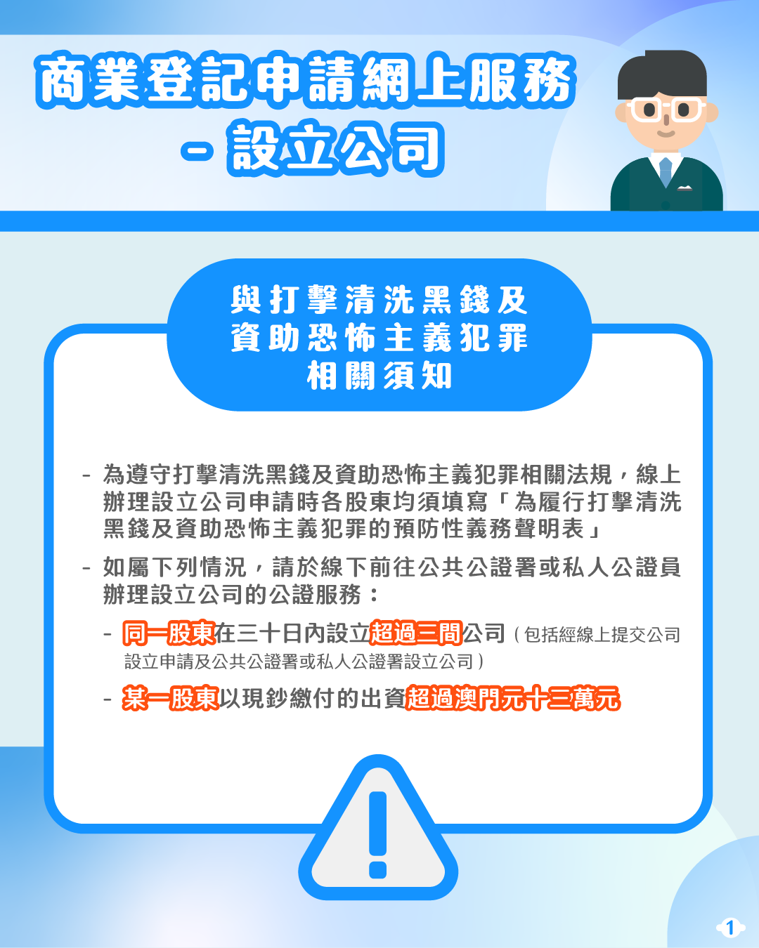 有意設立公司的人士可透過“商社通”提交公司設立的申請,並使用預設格式的線上文件模版製作公司設立的各類文件,無須再親臨公證署及登記局,即可輕鬆完成公司設立程序,提高企業開辦效率。此外,變更公司地址也可透過“商社通”辦理,包括提交申請、繳付登記費及取得登記副本,繼續實現指尖辦事模式,為用戶帶來最大便利。