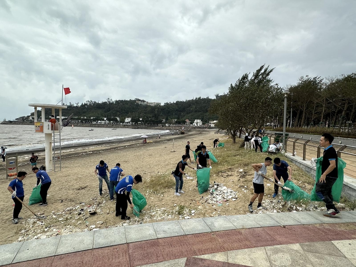 颱風後大量垃圾漂至海灘,為加快海灘環境恢復,今(28)日海事及水務局人員聯同環保志願者協會志願者共30多人,重點清理黑沙海灘泳區範圍的颱風垃圾,力爭儘快開放部份灘面予公眾使用。