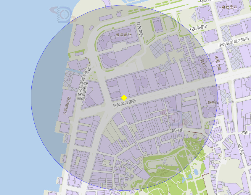 沙梨頭海邊街115號附近風險區域200米半徑範圍
