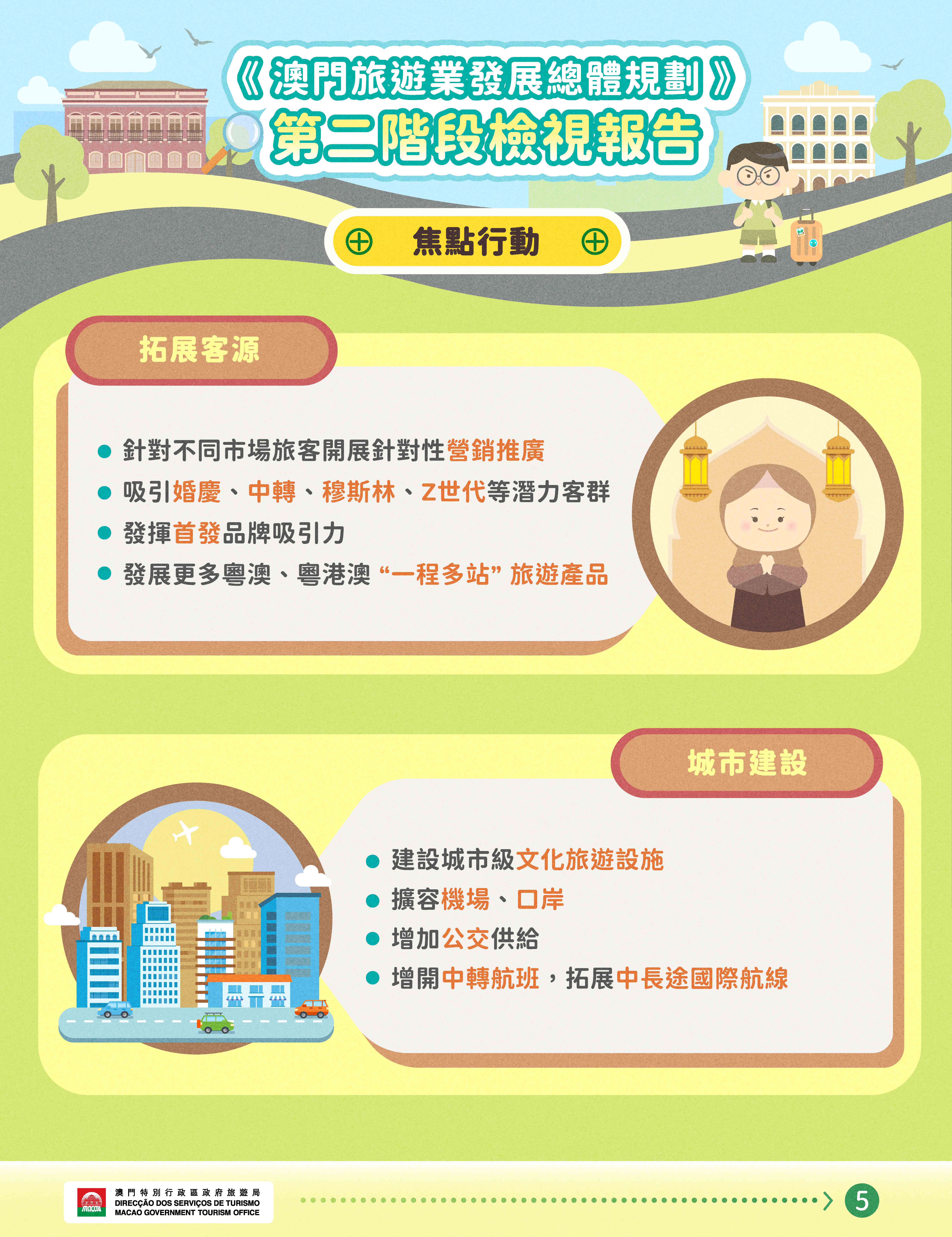 另外,第二階段檢視報告亦包含2030年關鍵指標預測及趨勢,供公眾參考。有興趣的公眾可於以下專題網頁下載《澳門旅遊業發展總體規劃》第二階段檢視報告(中文、葡文及英文版本): masterplan.macaotourism.gov.mo。