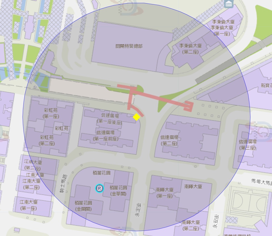 關閘廣場行人天橋附近風險區域100米半徑範圍