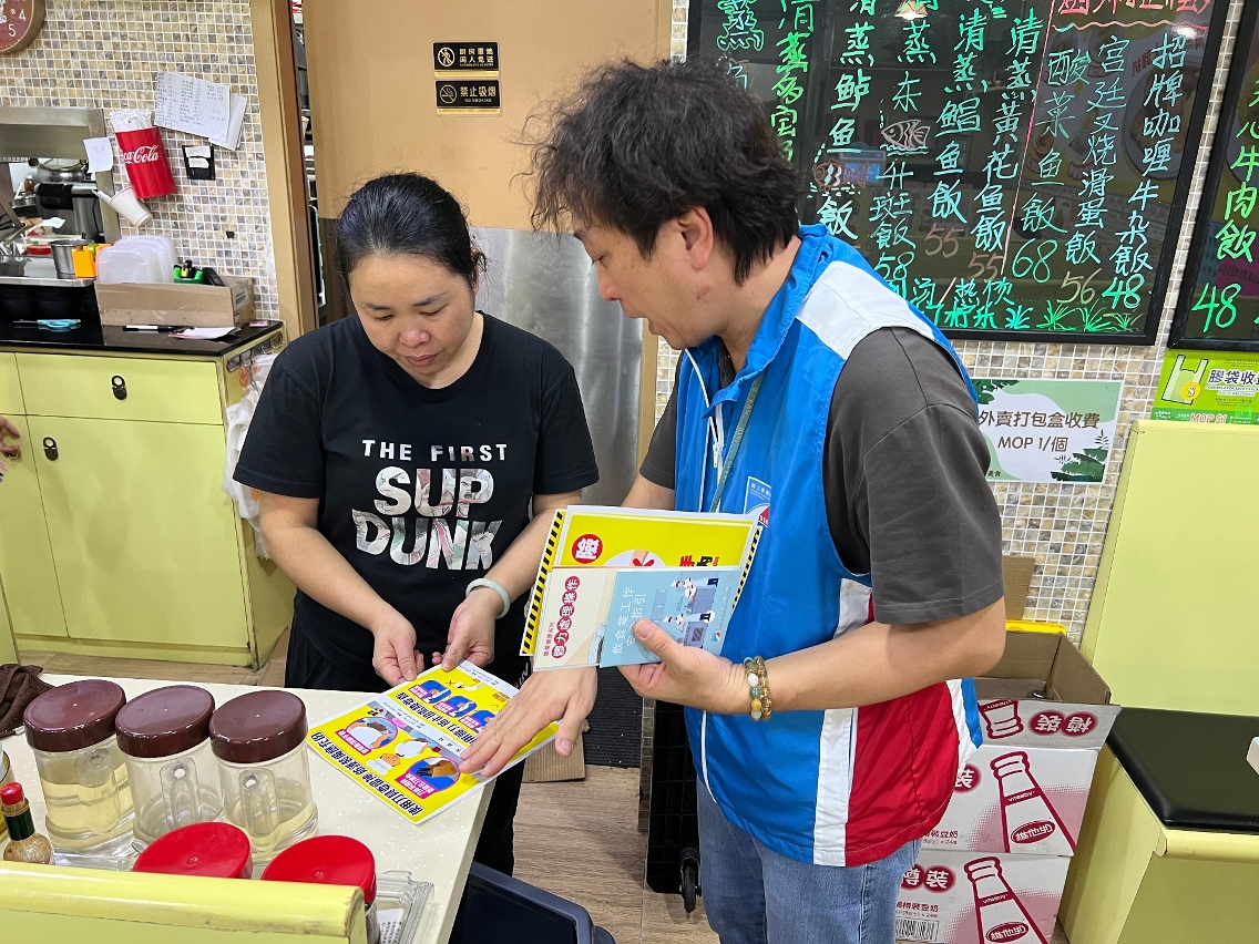 為提高本澳旅遊熱點各工作場所的職業安全健康意識,勞工局於國慶中秋假期前後持續派員到各大旅遊景點、飲食業、零售業及相關服務行業場所進行職安健重點宣導。因應節假日活動增多,市民和旅客出行和出遊趨增,本澳各旅遊熱點人流增多,周邊的商店和餐廳的營運狀況亦隨之繁忙,勞工局希望透過巡查呼籲商家應對人流與工作增加時,必須確保工作場所環境的安全,從而保障工作人員、市民與旅客的安全。