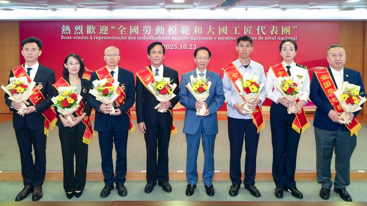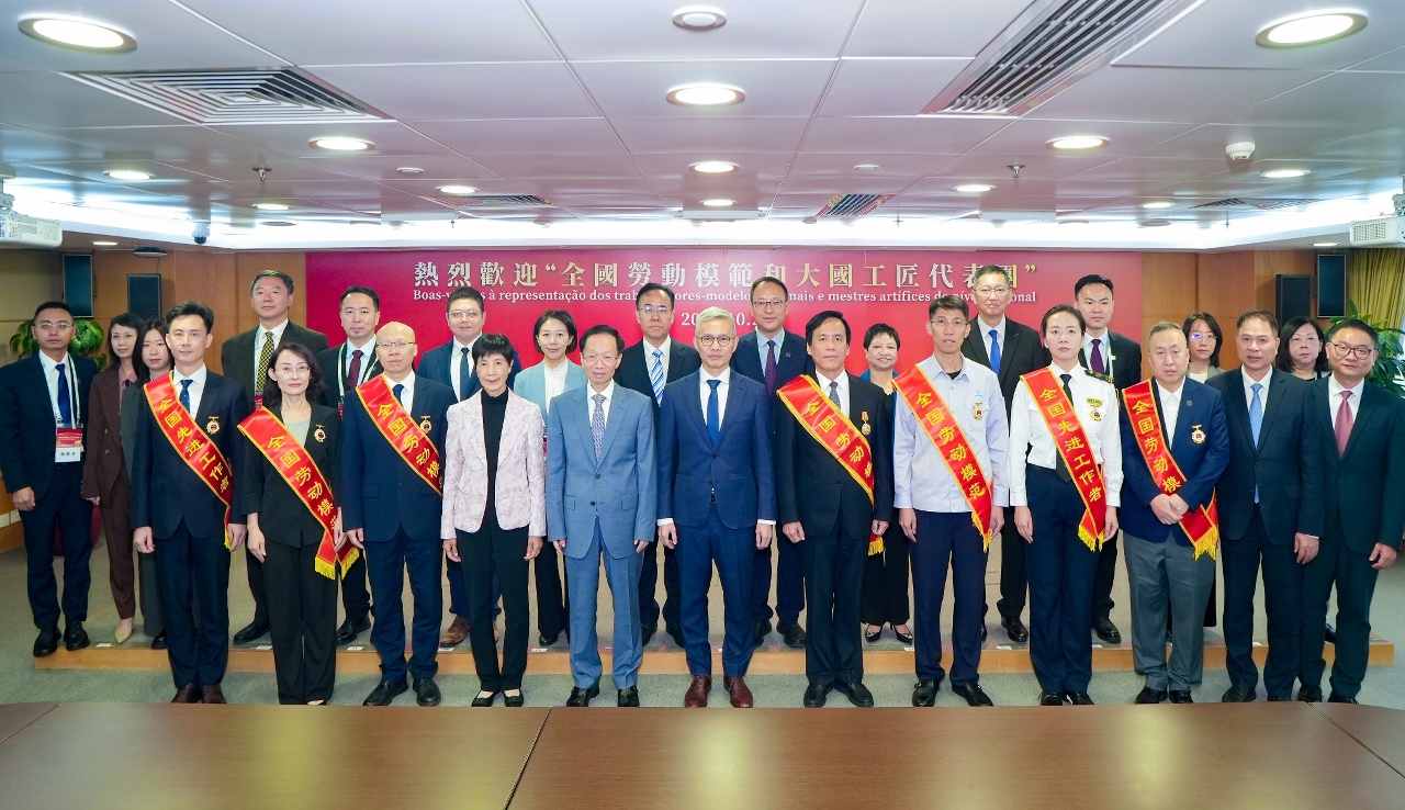 為慶祝中華全國總工會(下稱“全總”)成立100周年,應澳門特別行政區政府邀請,由全總組織的“全國勞動模範和大國工匠代表團” (下稱“代表團” ),於今(23)日上午抵達澳門展開訪問行程。經濟財政司司長戴建業歡迎代表團訪澳,希望藉此向澳門社會宣揚勞模精神與工匠精神。