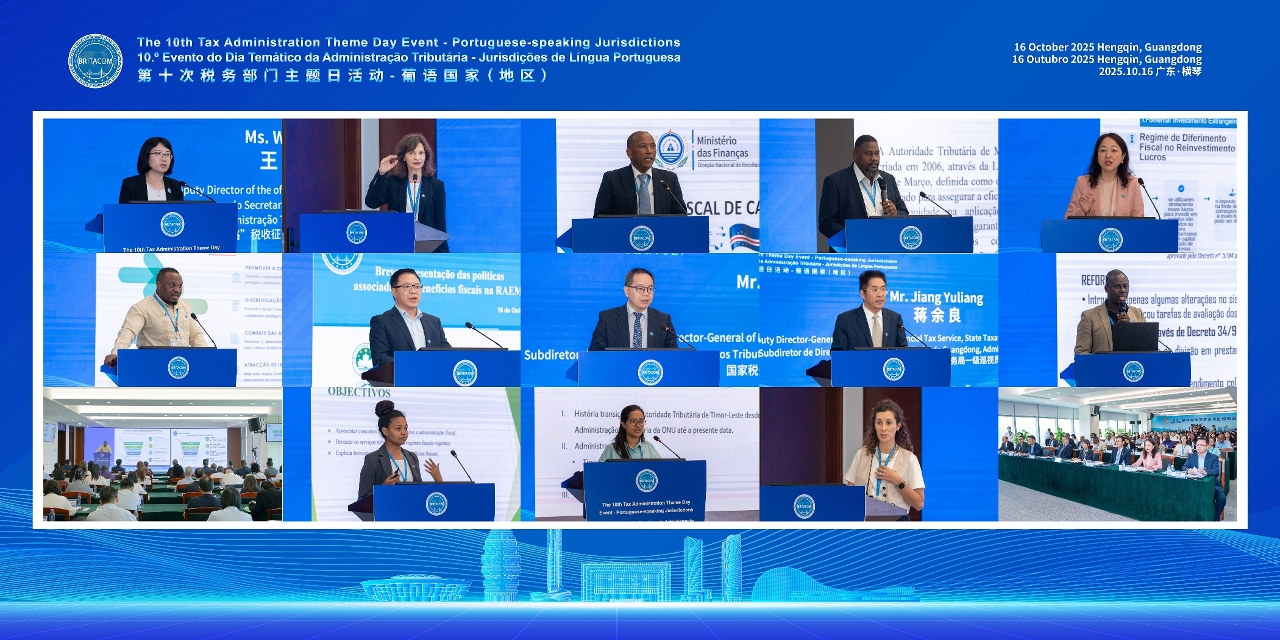 主題日活動於橫琴粵澳深度合作區稅務局舉行,會上,安哥拉、巴西、佛得角、中國、幾內亞比紹、中國澳門、莫桑比克、葡萄牙、聖多美和普林西比以及東帝汶等與會代表,就吸引投資稅收優惠政策,以及提升稅收徵管透明度等主題發表演講,並與企業、業界學界代表進行交流研討。