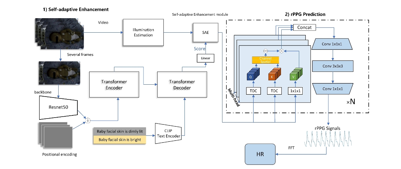 研究成果分別以“HRMamba: Fusing Luminance Information for Remote Physiological Measurement in Varied Lighting Conditions”(HRMamba:融合亮度信息的多光照環境下遠程生理信號測量方法)及“BRPDNet: A BioRegion Prompt Distillation Network for Physiological Monitoring”(BRPDNet:用於生理監測的生物區域提示蒸餾網絡)為題,發表於國際權威期刊《IEEE Journal of Biomedical and Health Informatics》;及以“Self-Adaptive Illumination Enhancement for Neonatal Remote Physiological Measurement in NICUs”(新生兒重症監護病房中基於自適應光照增強的遠程生理信號測量方法)為題,發表於國際權威期刊《IEEE Transactions on Consumer Electronics》。