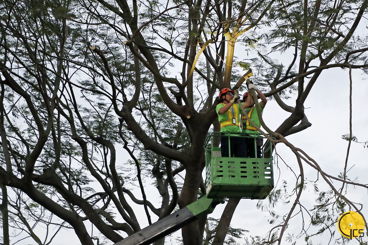 • “Crystal Fish” typhoon drill –Staff of the Civic and Municipal Affairs Bureau remove fallen tree trunks in parks.