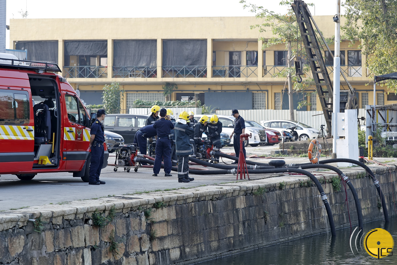 • “Crystal Fish” typhoon drill – Members of the Macao Customs Service and the Fire Services Bureau conduct search and rescue work in a flooded underground car park.
