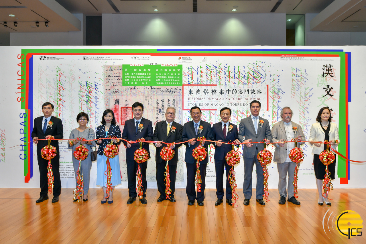 Secretary for Social Affairs and Culture, Mr Tam Chon Weng, presides over the opening ceremony of the exhibition entitled “Chapas Sínicas —— Stories of Macao in Torre do Tombo”.