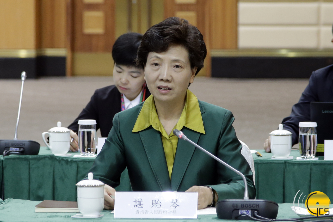 • The Governor of Guizhou Province, Ms Chen Yiqin, delivers a speech during a meeting in Macao to discuss cooperation in poverty alleviation projects jointly held by the Macao SAR Government, the Liaison Office of the Central People's Government in the Macao SAR and the Guizhou Government.