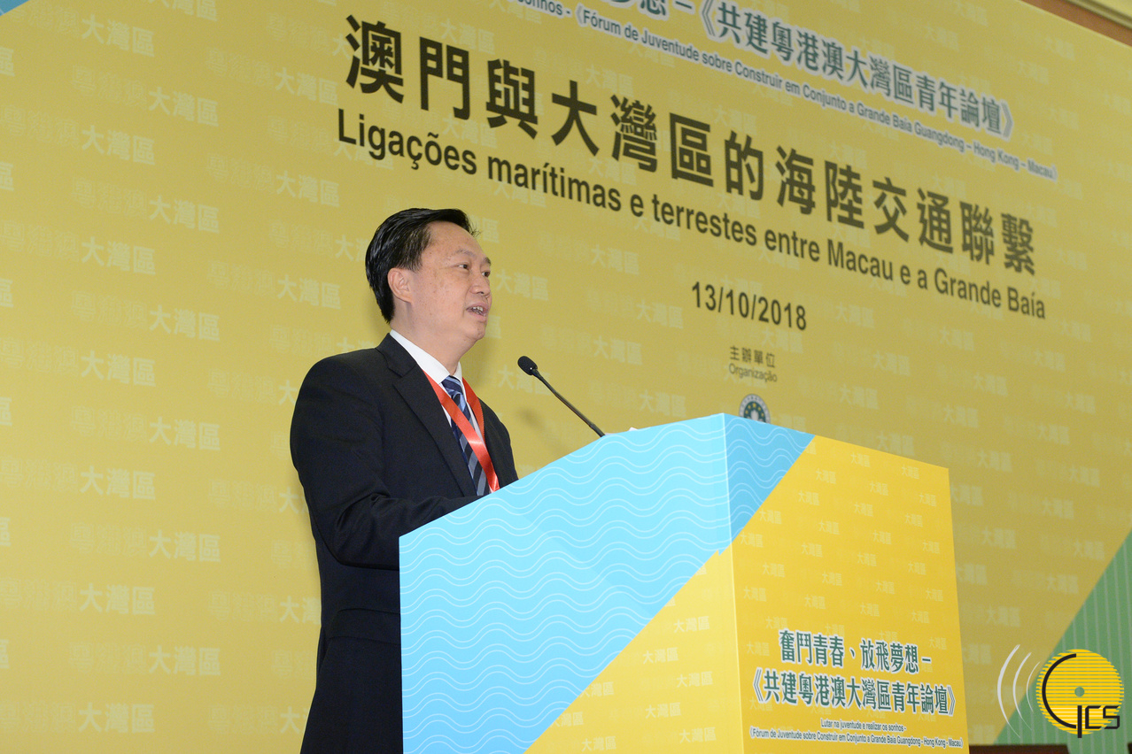 • The Secretary for Transport and Public Works of the Macao SAR, Mr Raimundo do Rosário, speaks at the parallel panel session on "Macao's Land and Sea Transport Links with the Greater Bay Area" under the "Youth Forum on Jointly Building the Guangdong-Hong Kong-Macao Greater Bay Area".