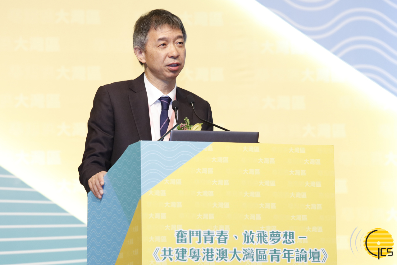 • The Director of the Policy Research and Regional Development Bureau of the Macao Special Administrative Region, Mr Mi Jian, delivers a keynote speech at the "Youth Forum on Jointly Building the Guangdong-Hong Kong-Macao Greater Bay Area".