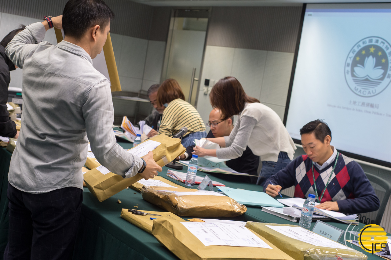 • Officials of the Land, Public Works and Transport Bureau open tender documents for a maintenance work for the Gate of Understanding.