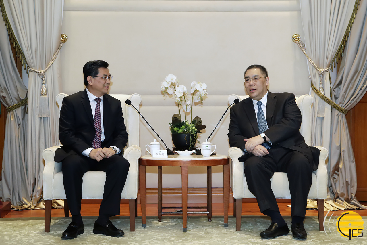 • The Chief Executive, Mr Chui Sai On, meets with the Party Secretary of Jinan University, Mr Lin Rupeng, at the Government Headquarters.