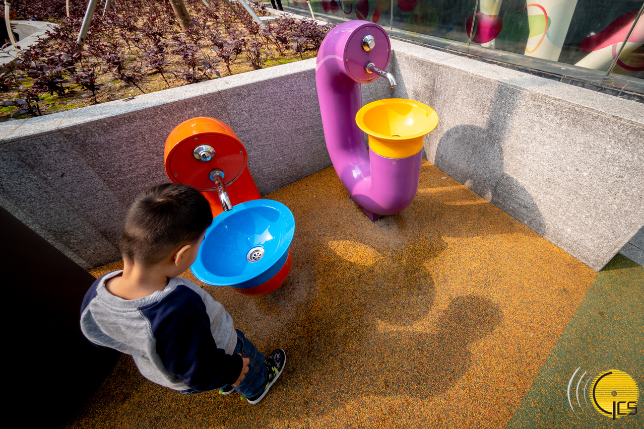 • The play facilities for children feature brightly-coloured fittings including water fountains.