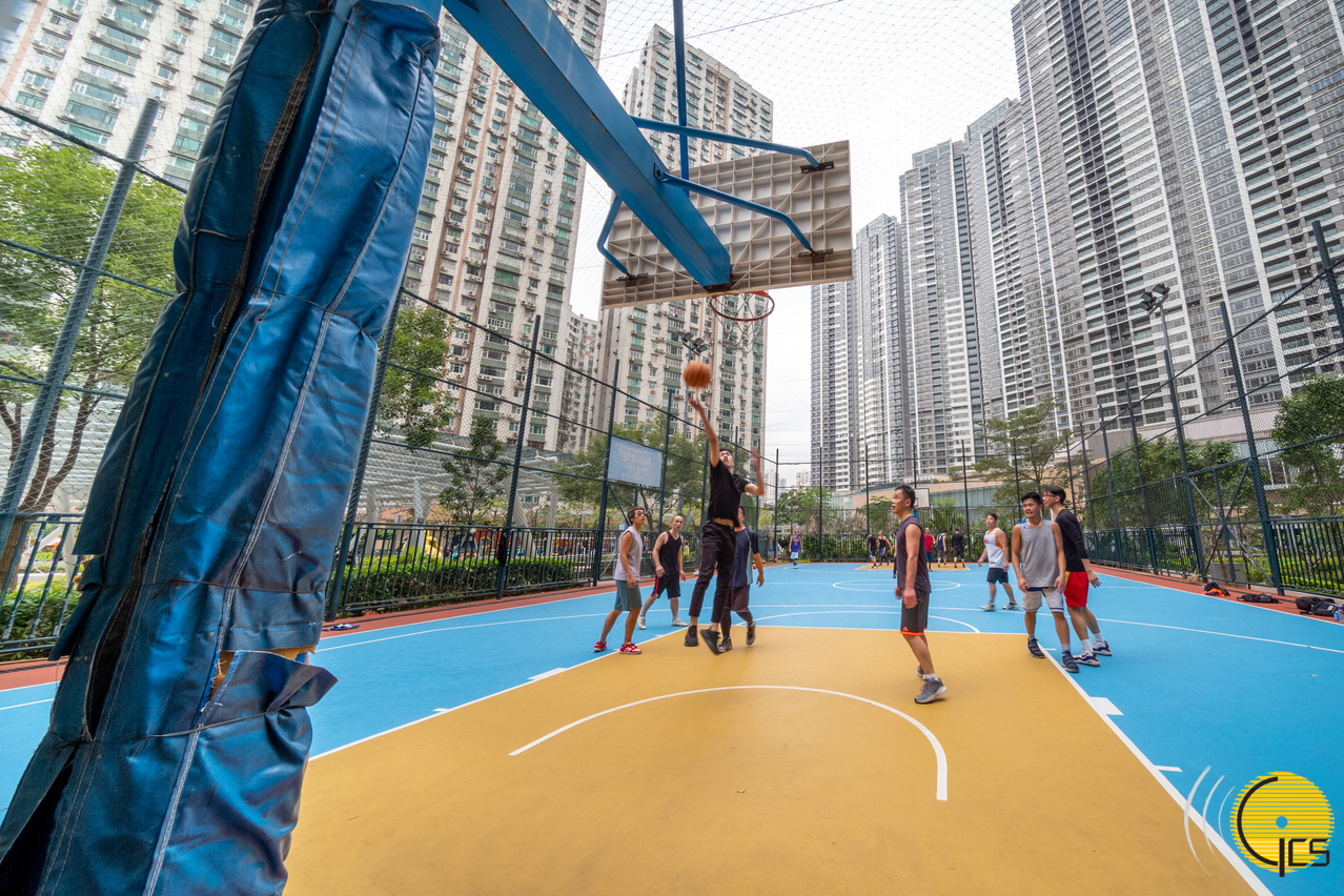• An outdoor basketball court in the park is an ideal place for people to play sport with friends.