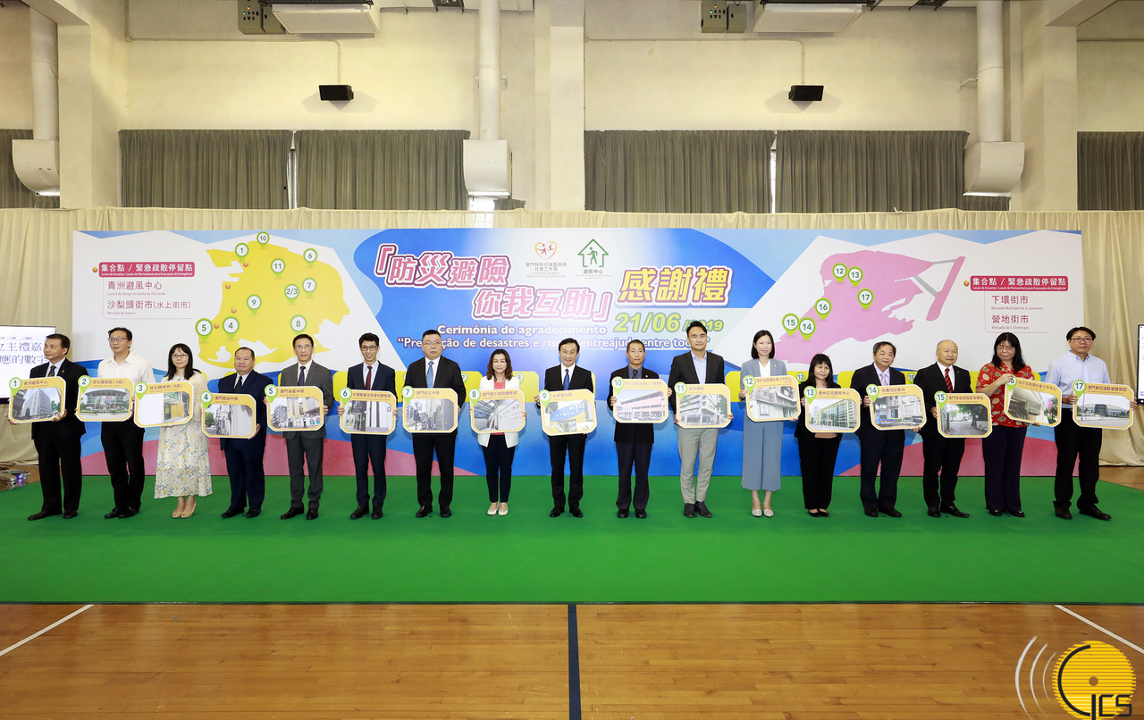 The Secretary for Social Affairs and Culture, Mr Tam Chon Weng, attends a ceremony held by the Social Welfare Bureau to award non-governmental organisations and schools for the provision of venues as shelter centres in the event of public emergency.