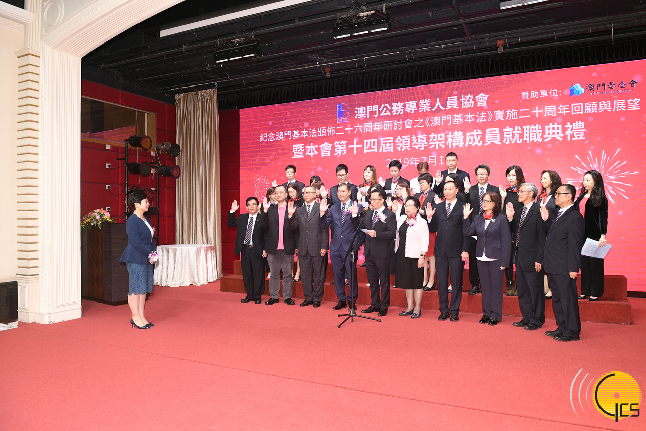 • The Secretary for Administration and Justice, Ms Chan Hoi Fan, attends the inauguration ceremony of the 14th management board of the Professional Civil Servants Association of Macau.